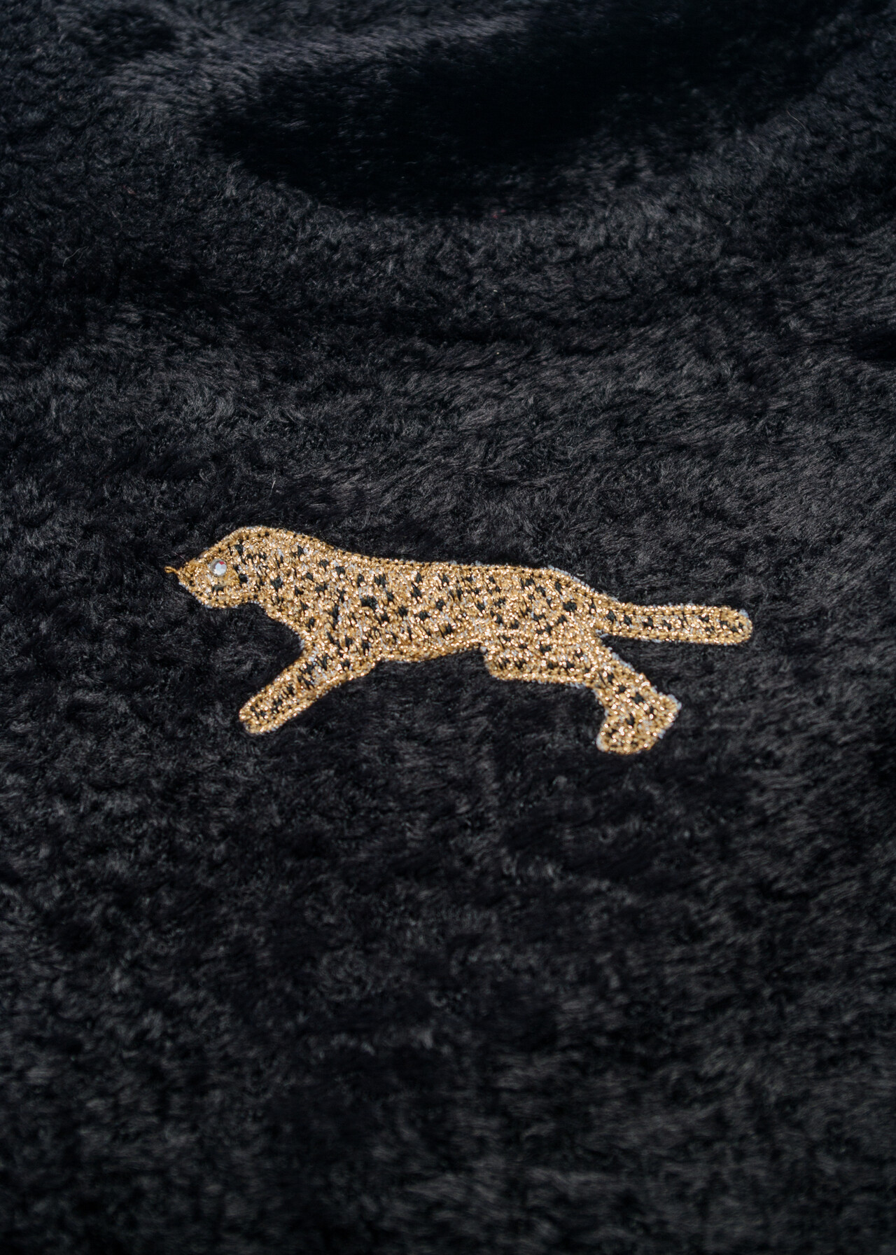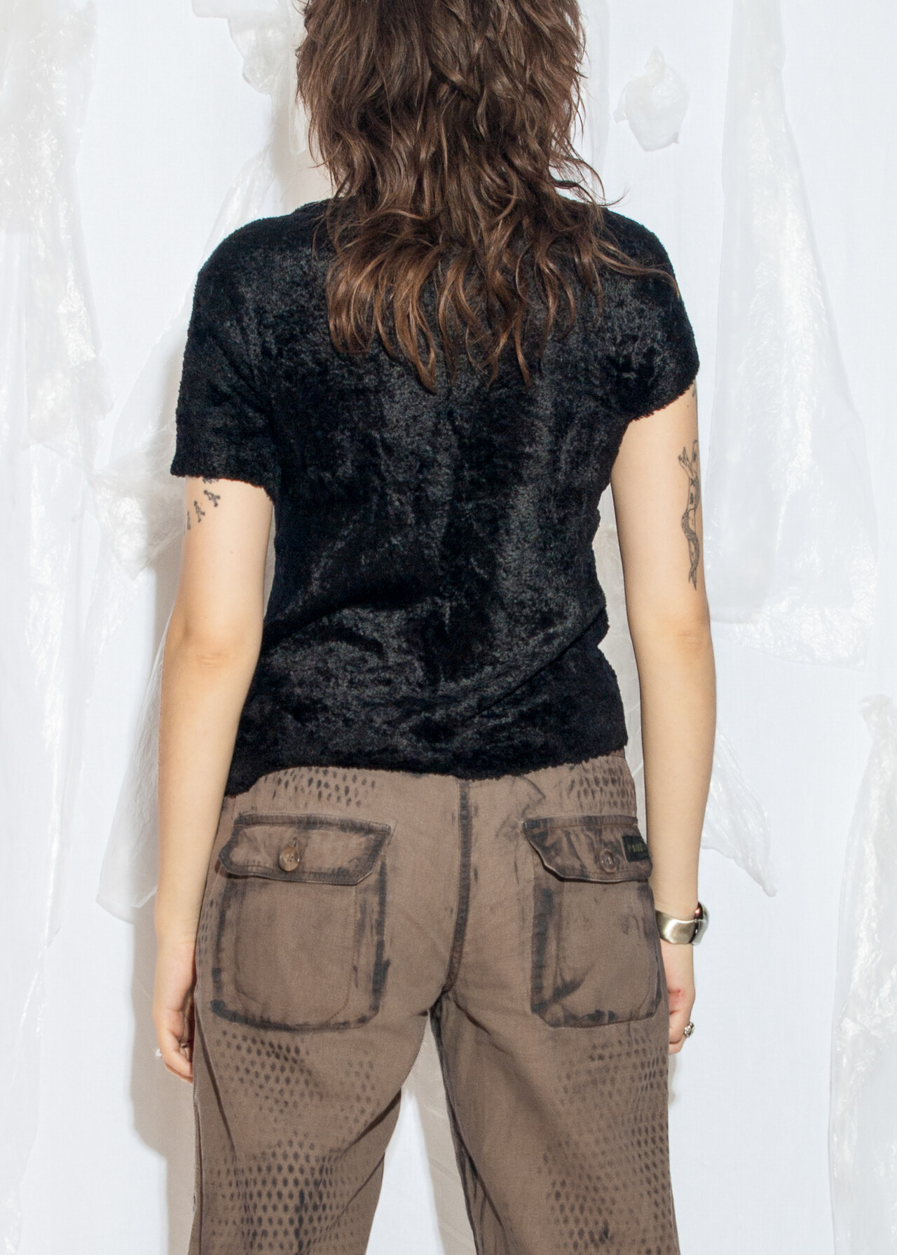 Vintage 90s Furry Baby Tee in Black with Leopard Patch
