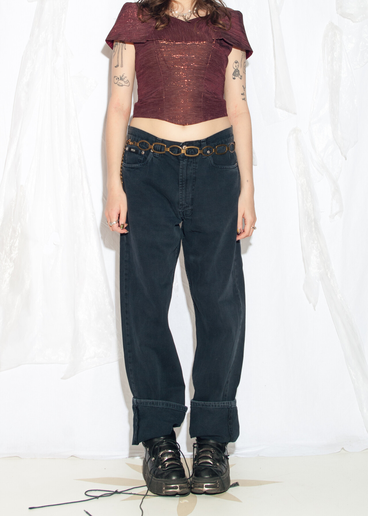 Vintage crop jeans 90s reworked shredded hem denim trousers