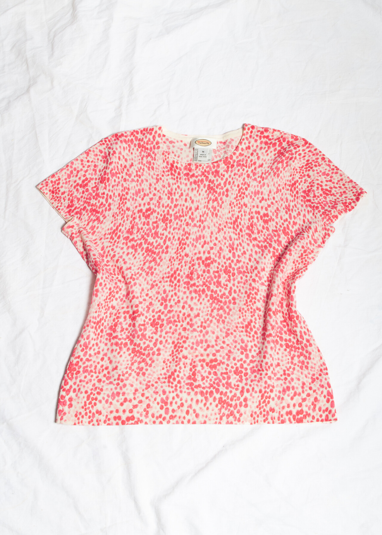 Tags: 90s vintage style, knitted baby tee, pink leopard pattern
