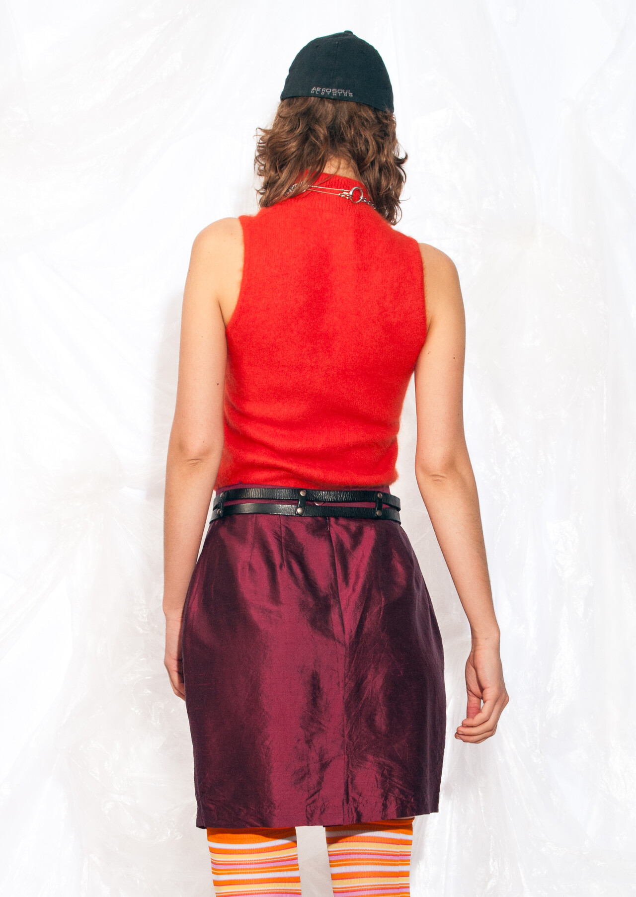 Be the first to review “Vintage 90s Mini Skirt in Maroon Raw Silk w High Waist” Cancel reply