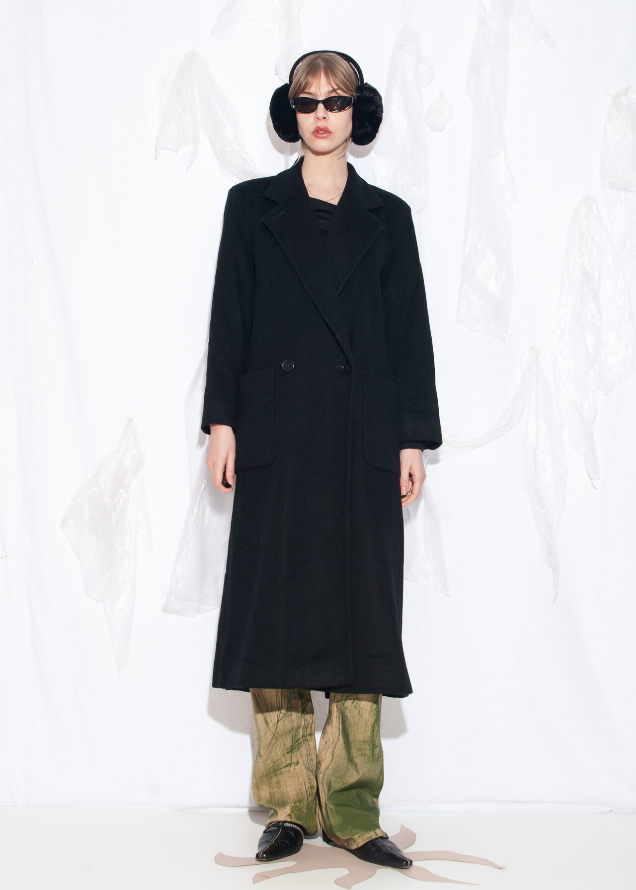 Tags: 90s vintage style, long wool coat, Perry Ellis