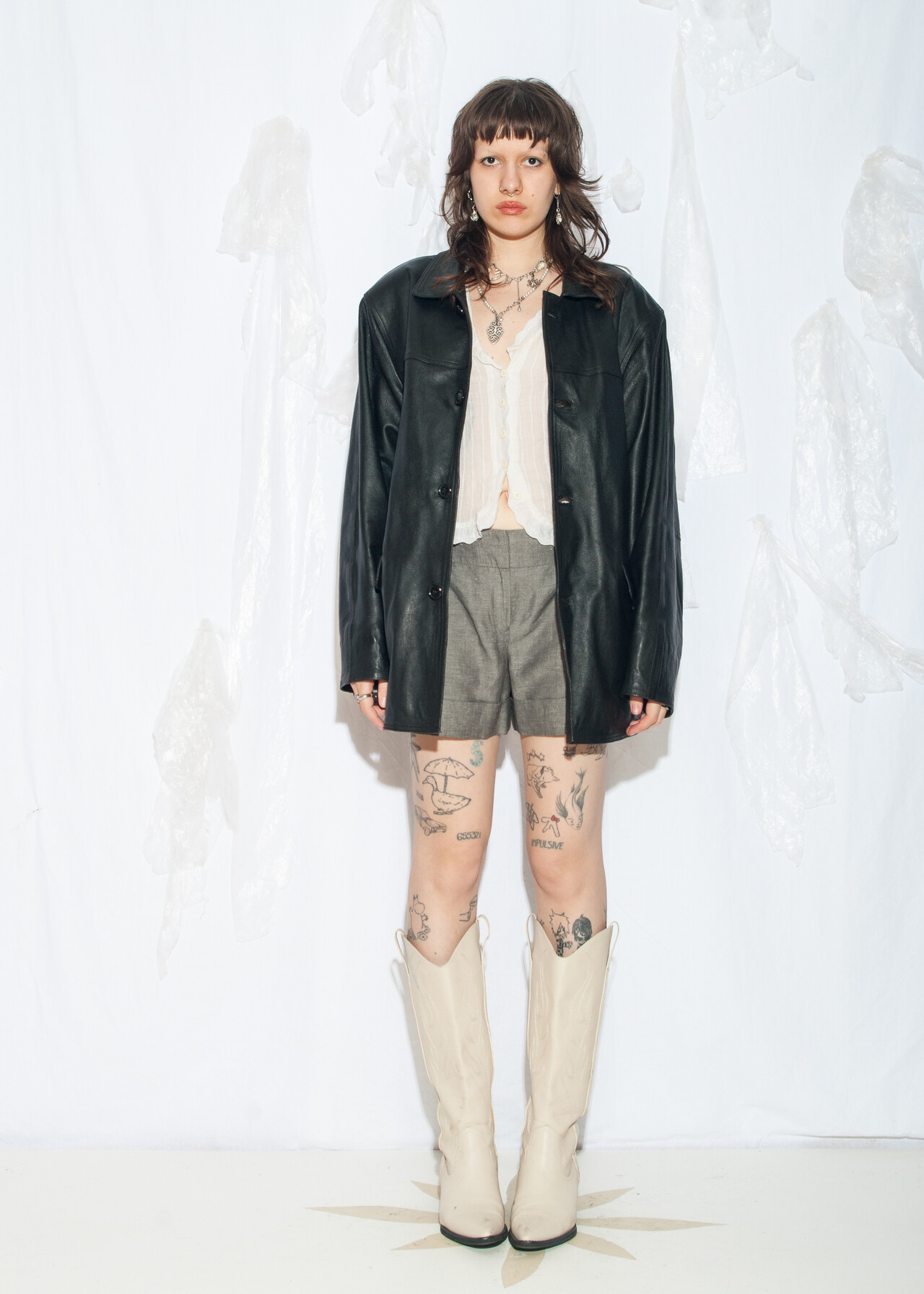 Tags: 90s vintage fashion, leather coat, oversized parka, real leather jacket, y2k grunge outfit, y2k style clothing