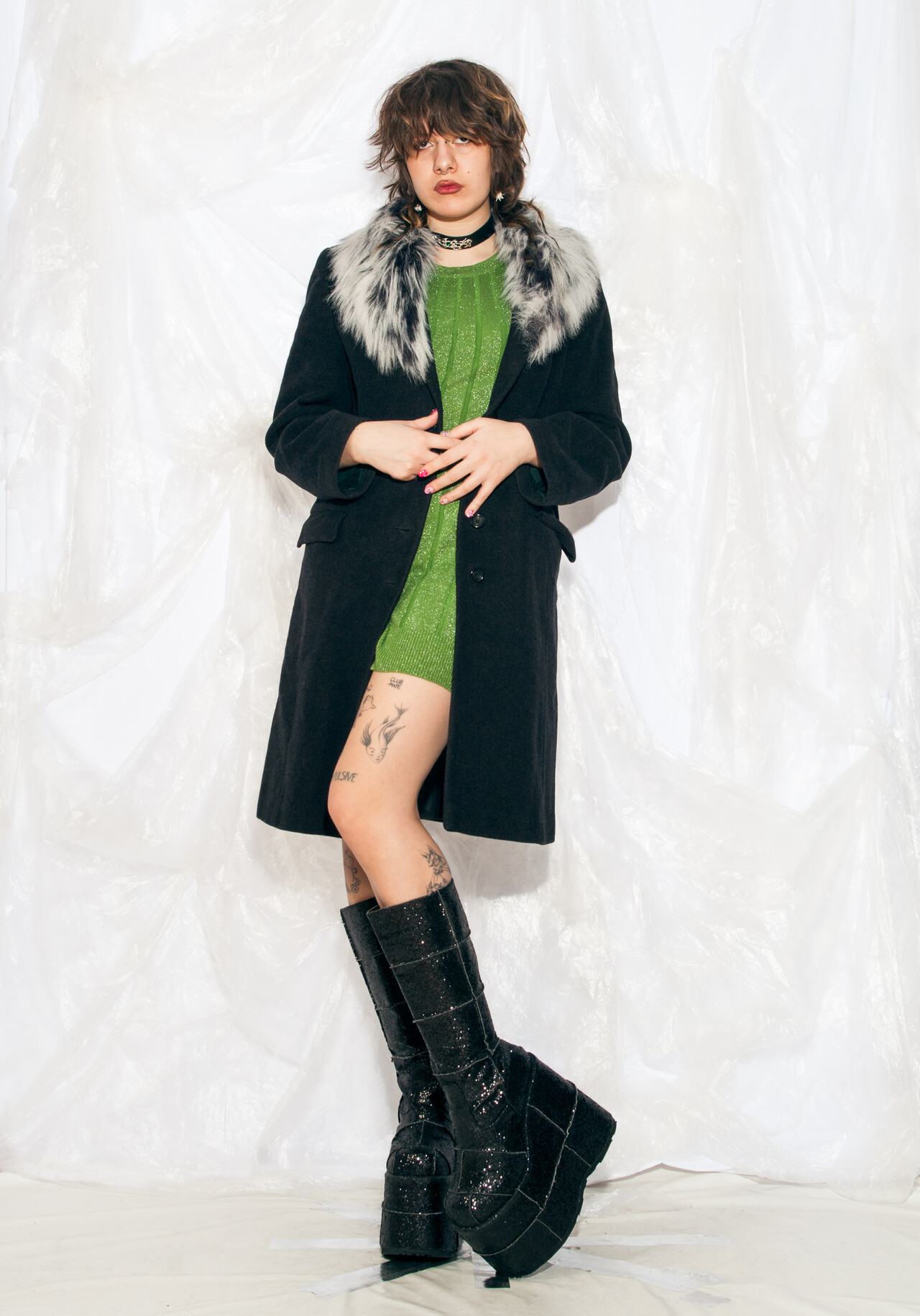 Be the first to review “Vintage 90s Reworked Coat with Faux Fur Collar in Black Wool” Cancel reply