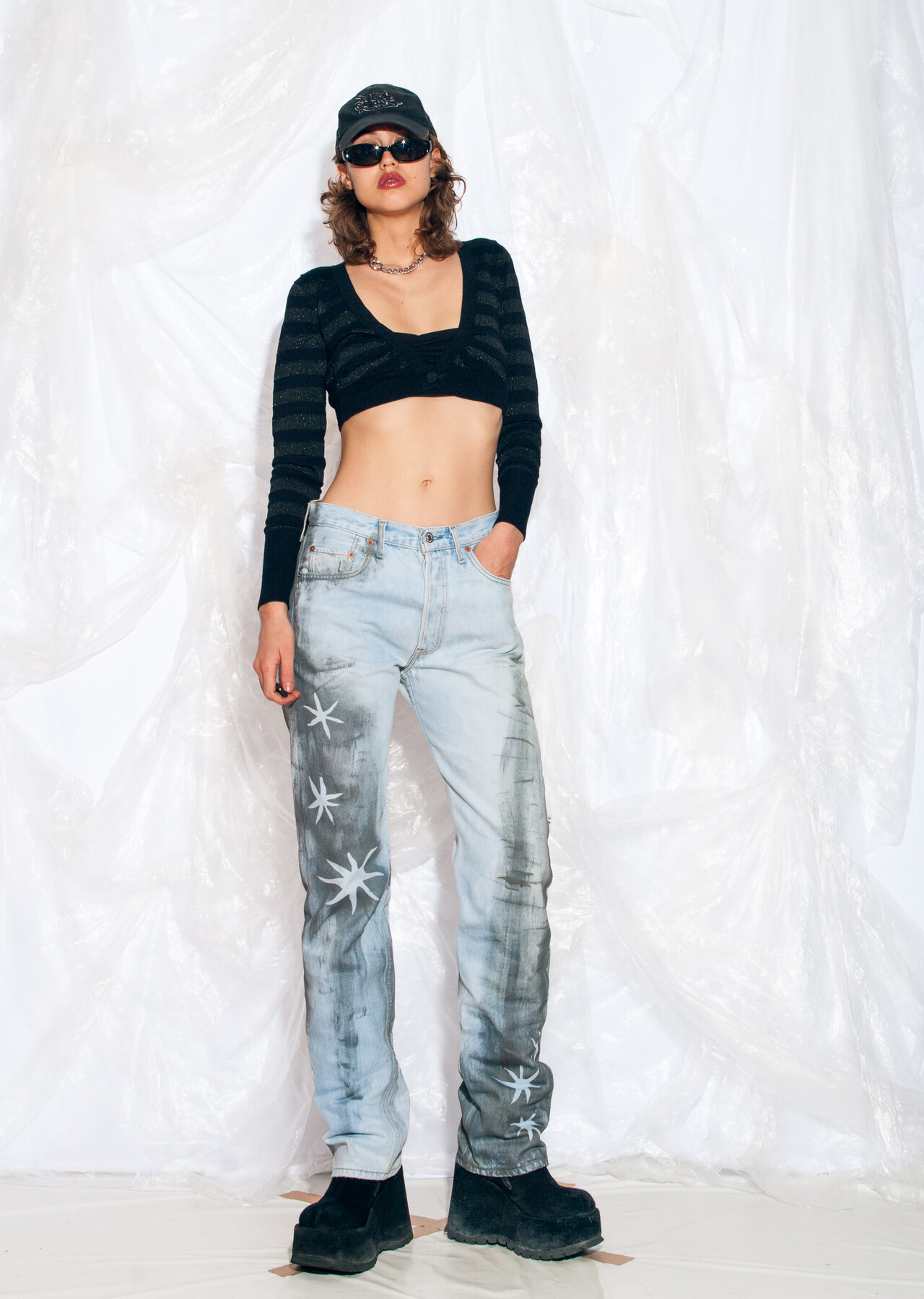 Step back in time with these funky 90s vintage jeans from Levi’s. Hand-painted and reworked, these blue beauties will have you rocking that classic style like it’s 1995!