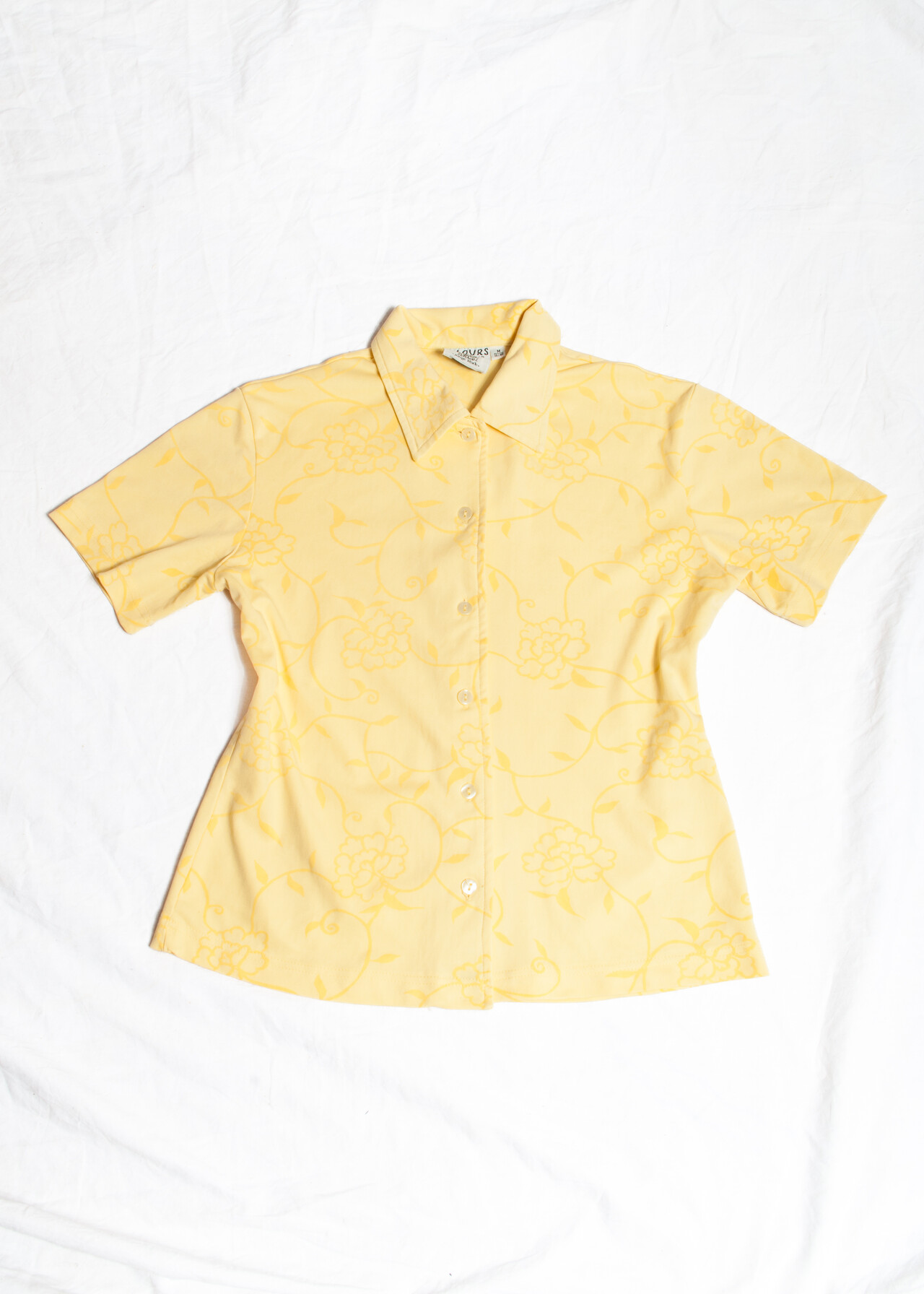 This 90s vintage shirt-style baby tee is the yellow ticket to a time when butterfly clips and dial-up tones ruled the universe.