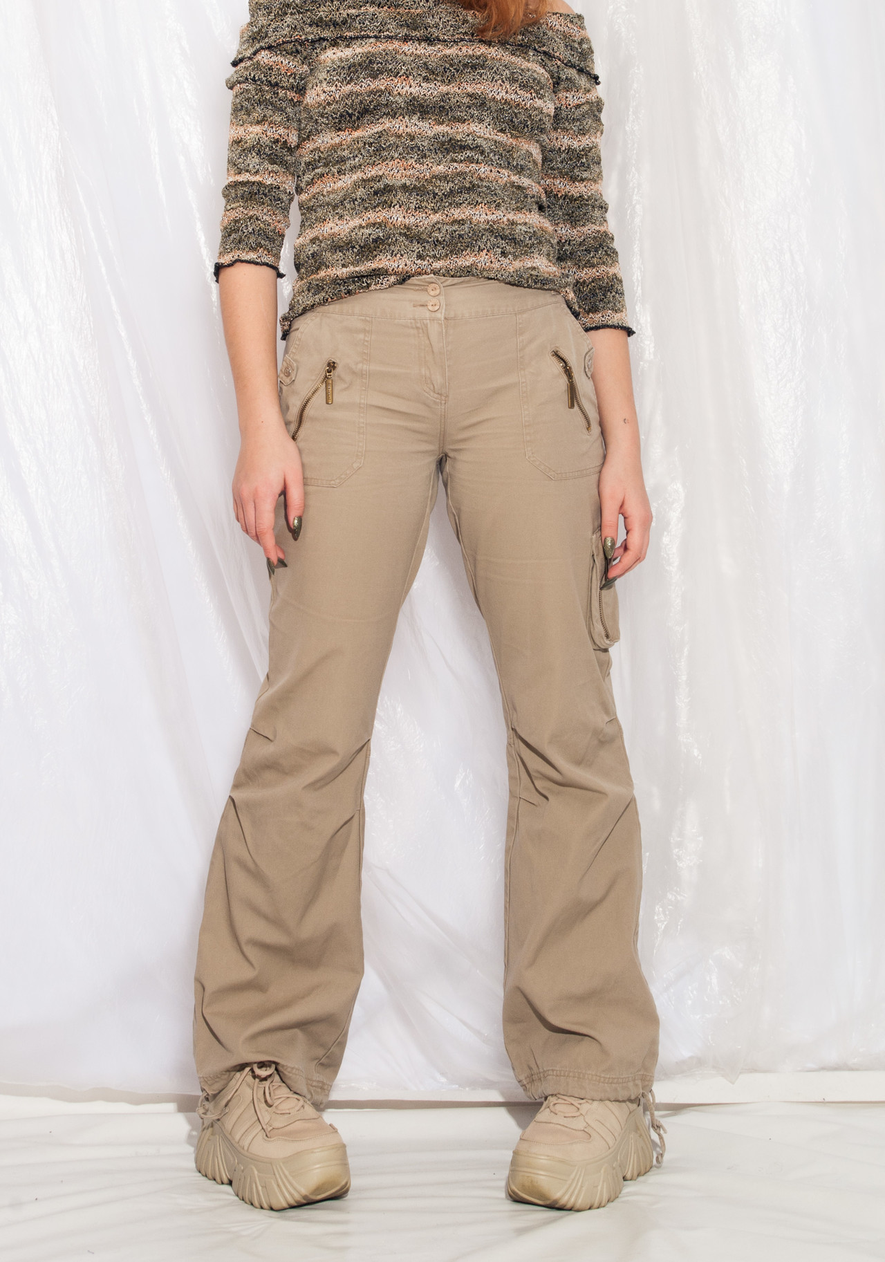 Be the first to review “Vintage Cargo Trousers Y2K Tattoo Flare Pants in Beige” Cancel reply
