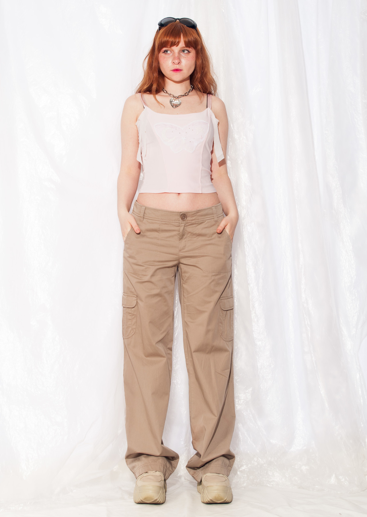 Y2K vintage cargo trousers in mint condition. These babies come with four pockets for all your snacks and flip-phones and are made of a good, sturdy cotton that will last forever. Just don’t mention the zip closure – it’s a bit sensitive about its age.
