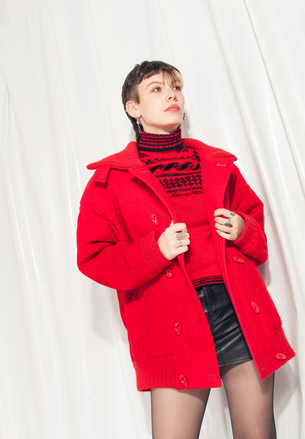 This red coat is a real vintage piece that was made in Germany back in the 80s and it survived in great condition. Featuring a quilted non-scratchy wool blend fabric, three pockets and a button closure.