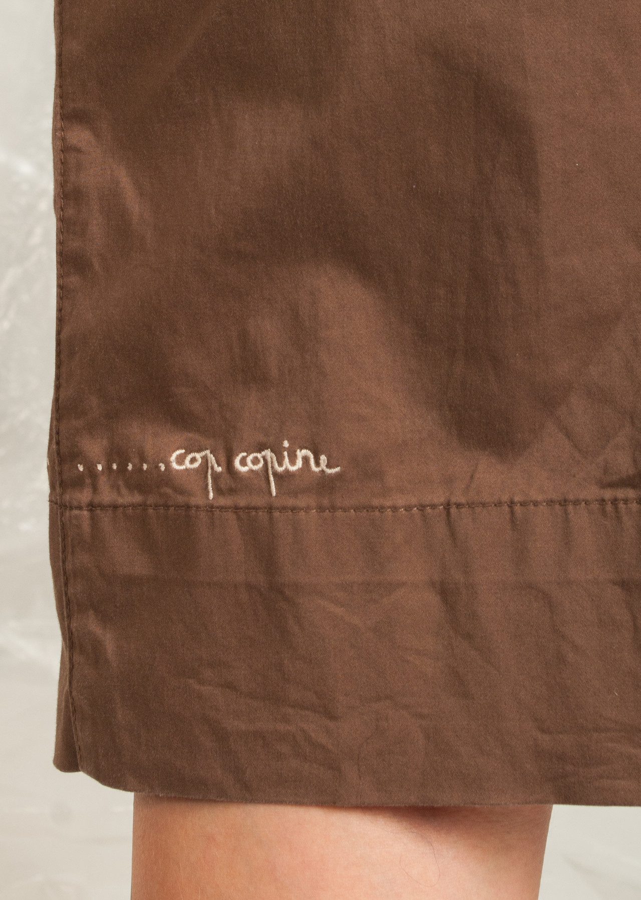 Cop Copine skirt from the early 2000s, a true vintage babe in excellent shape. Featuring a weird-cut waist, two pockets, brown cotton fabric and a zip closure. Help this vintage cutie to find a new home in your wardrobe!