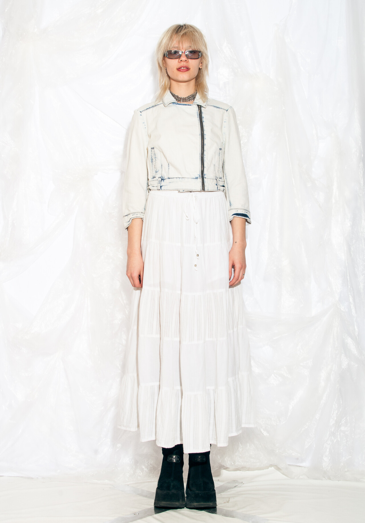 Vintage denim jacket 80s grunge acid wash cropped jacket