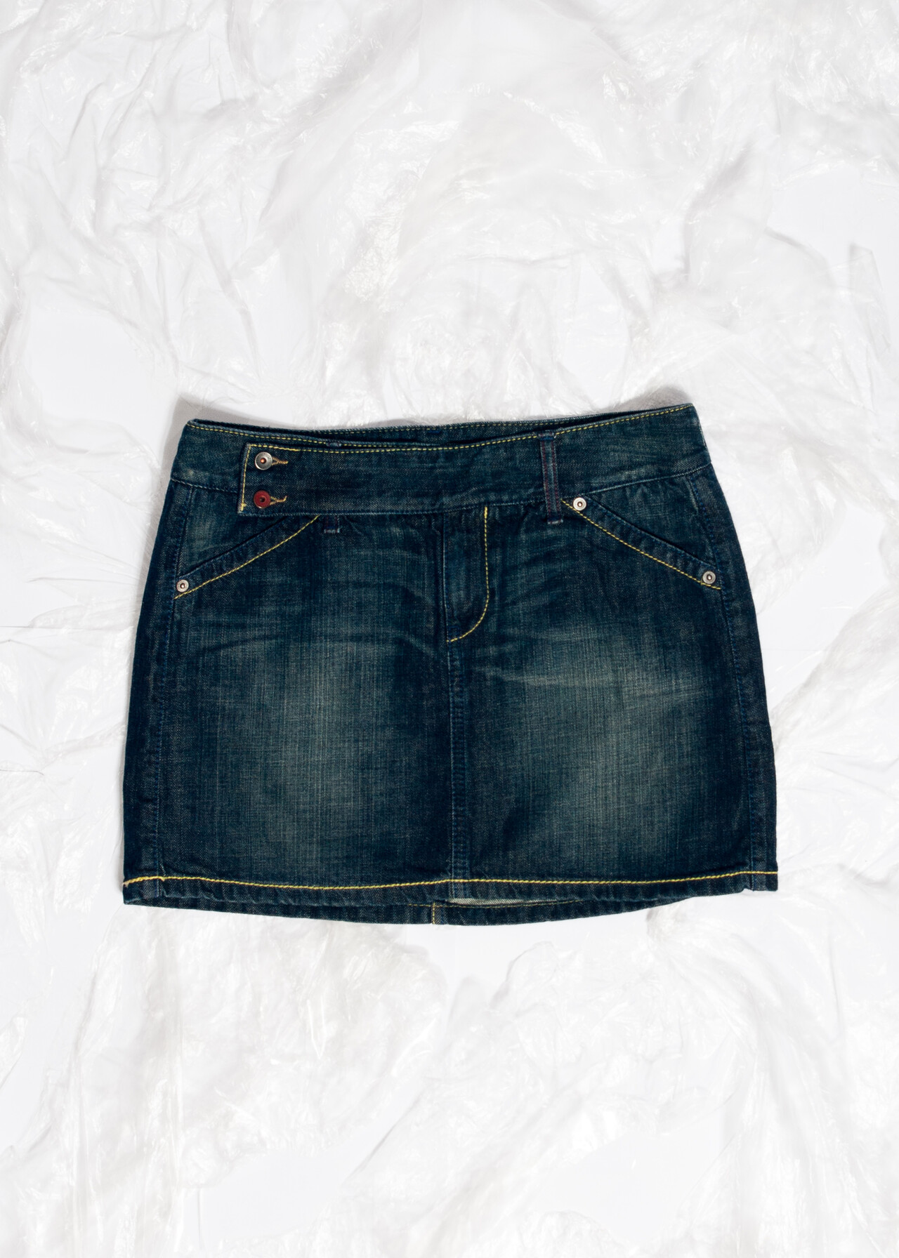 Vintage Denim Skirt Y2K Low Rise Mini in Blue