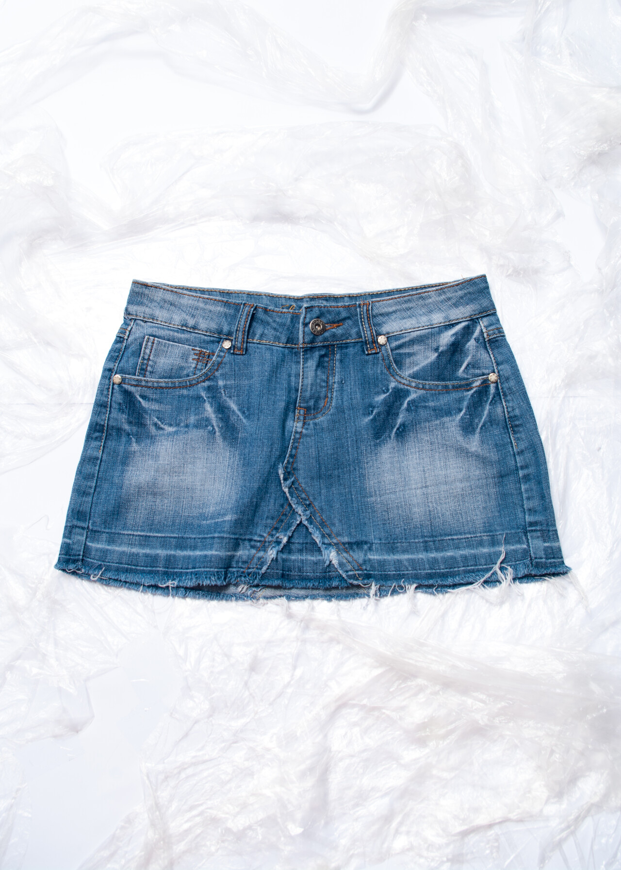 Vintage Denim Skirt Y2K Low Rise Mini in Stonewashed Blue
