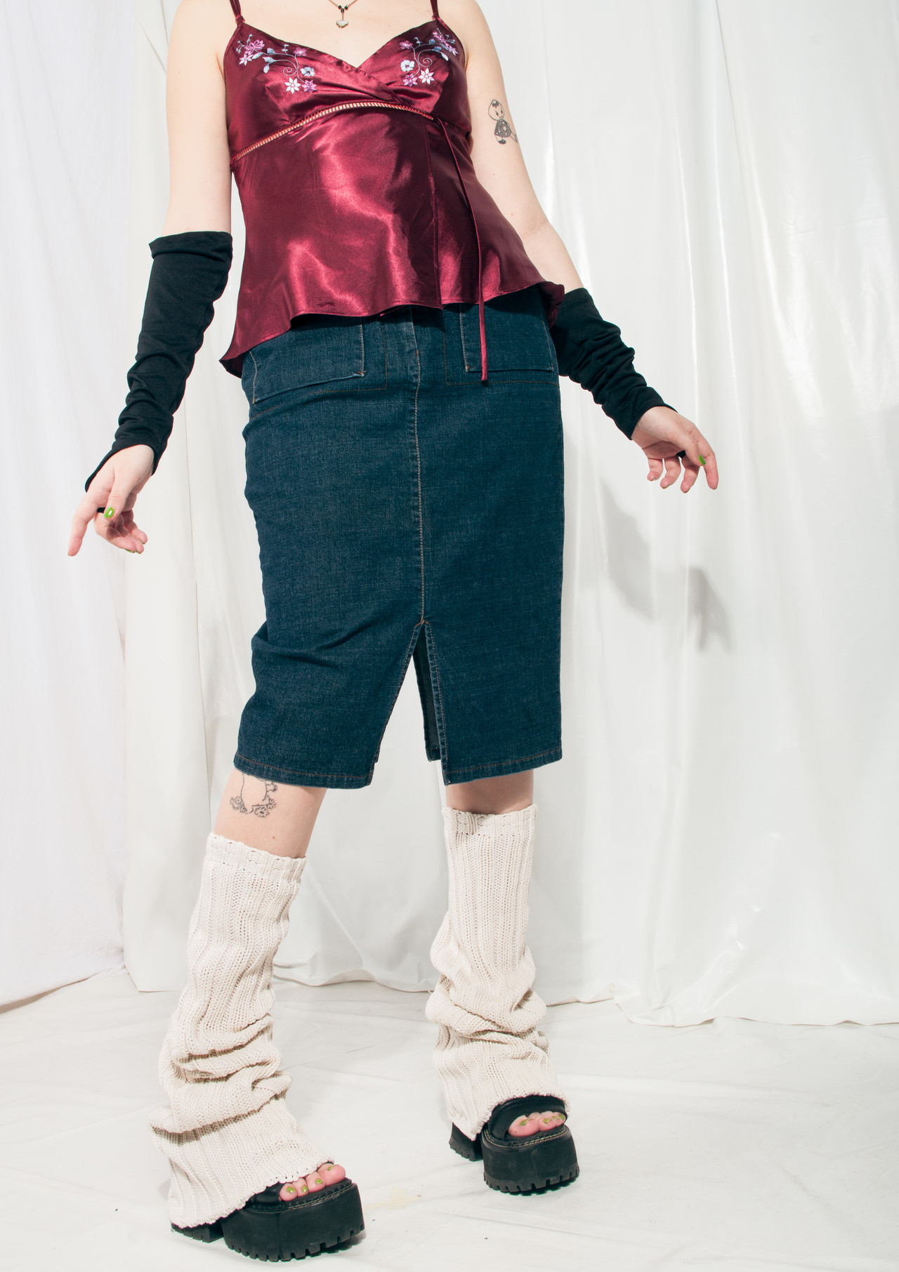 Vintage Denim Skirt Y2K Middle Rise Midi in Dark Blue