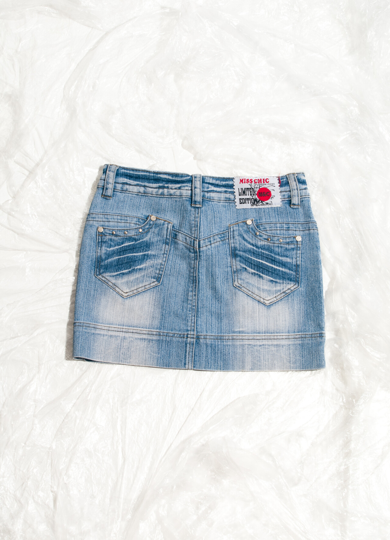 Vintage Denim Skirt Y2K Rave Mini in Stonewashed Blue