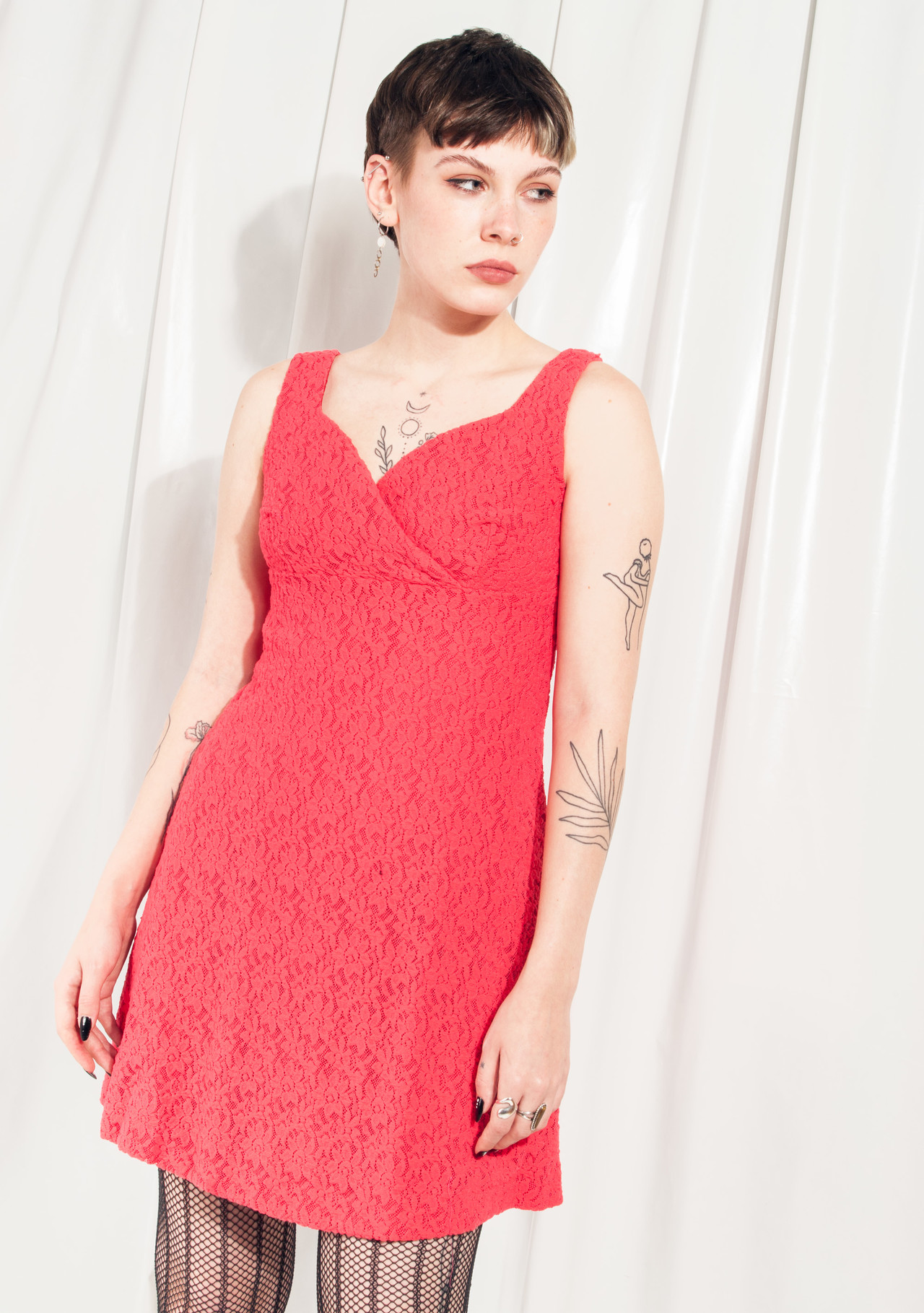A real vintage dress from the 60s. Although time travel is a bit exhausting, this piece withstood the test of time in great condition. It features pink lace fabric and a metal zip at back. It’s fully lined. We recommend it for someone small as its under breast cut is placed quite high (it’s quite common with 60s clothing). Save the planet & ditch fast fashion once and for all!