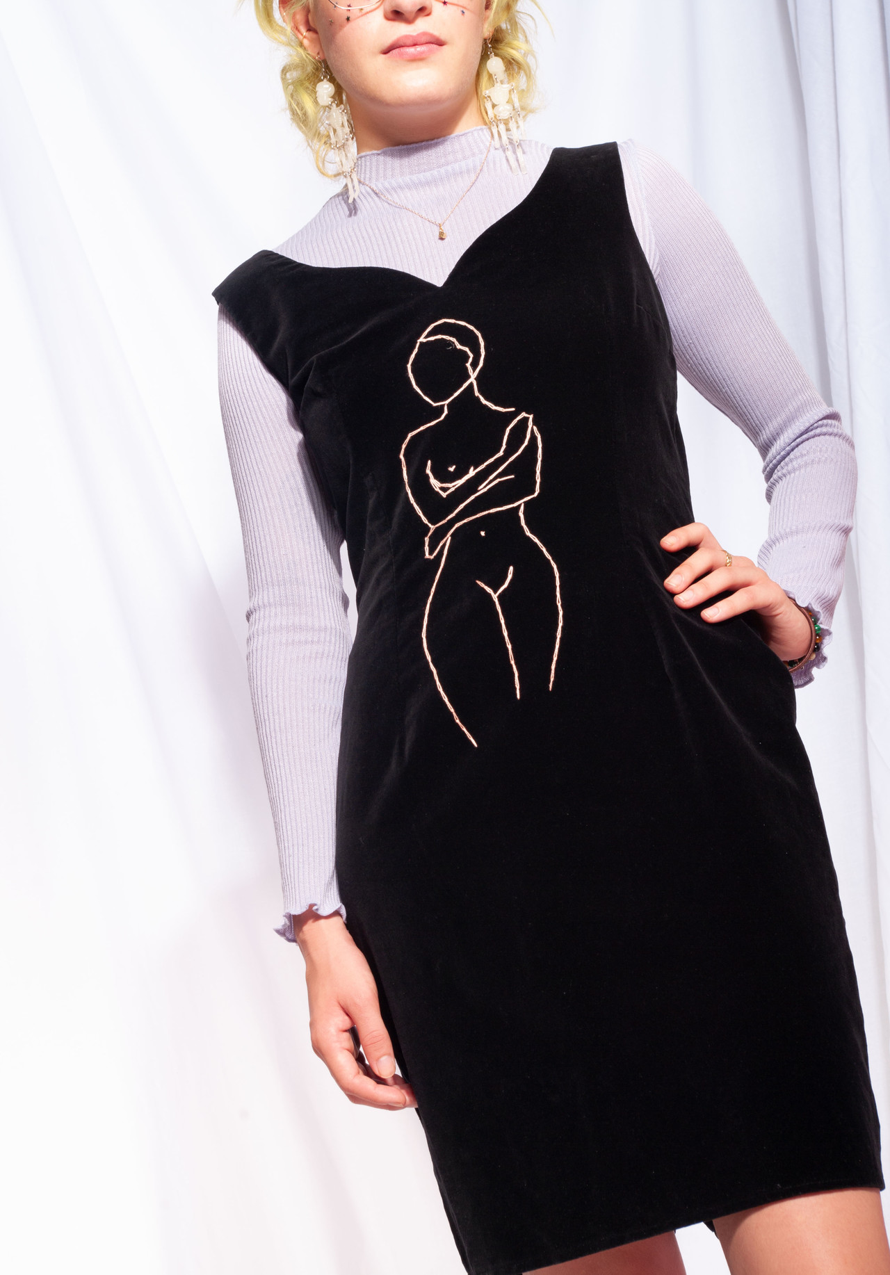 Vintage dress 90s reworked feminist embroidery velvet lbd
