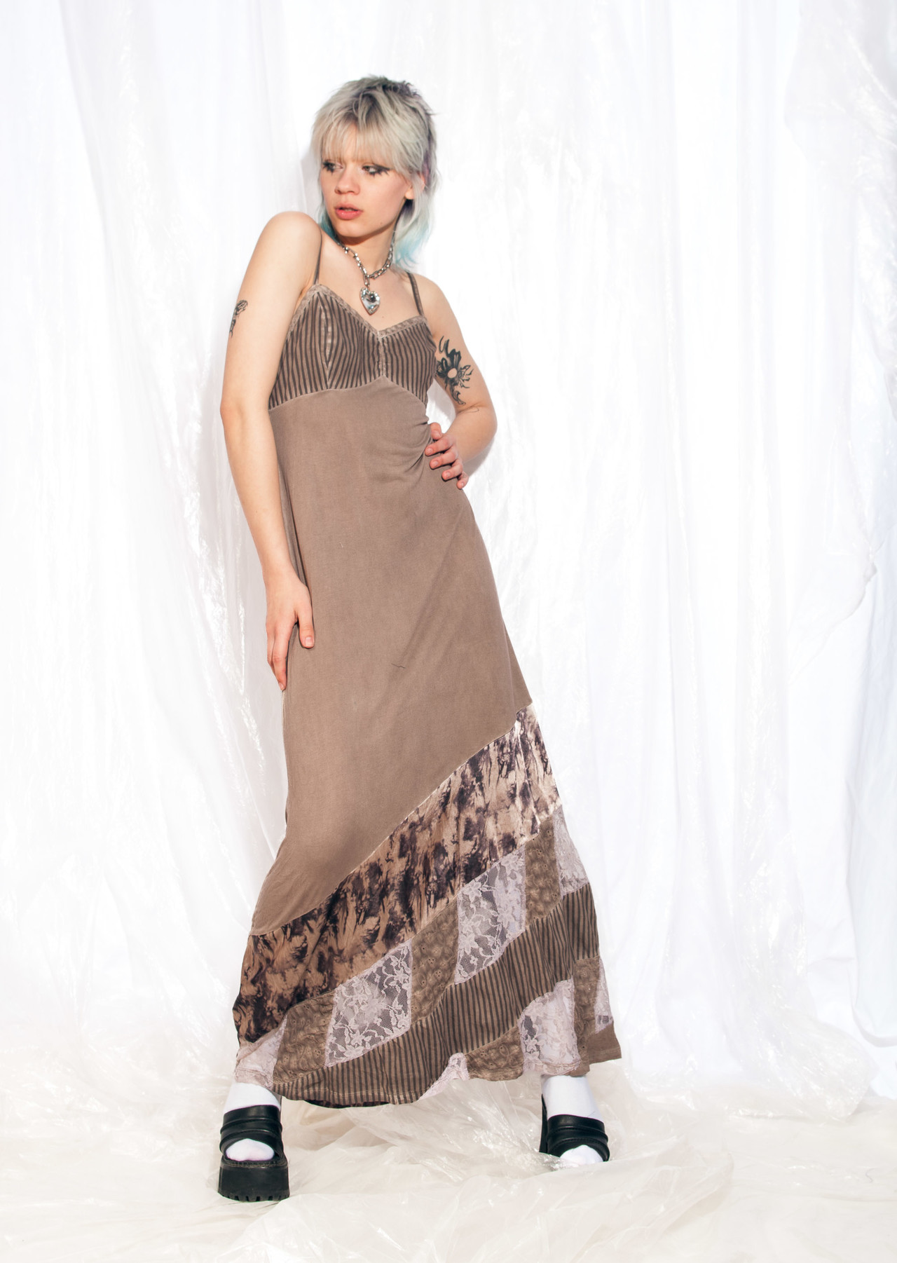 Vintage Dress Y2K Boho Patchwork Maxi in Brown Cotton