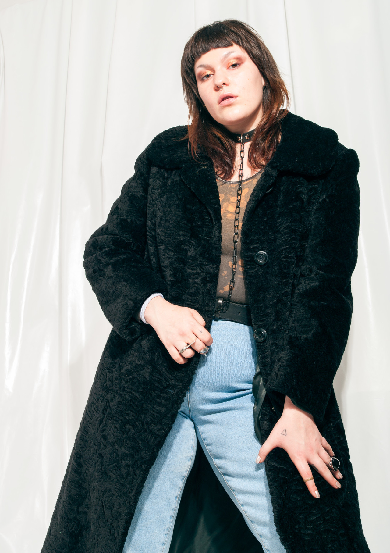 This one is a rad faux fur coat that arrived from the 80s in great vintage condition. It has a button closure and a small inner pocket. This fully lined beaut is perfect for cold winter days.