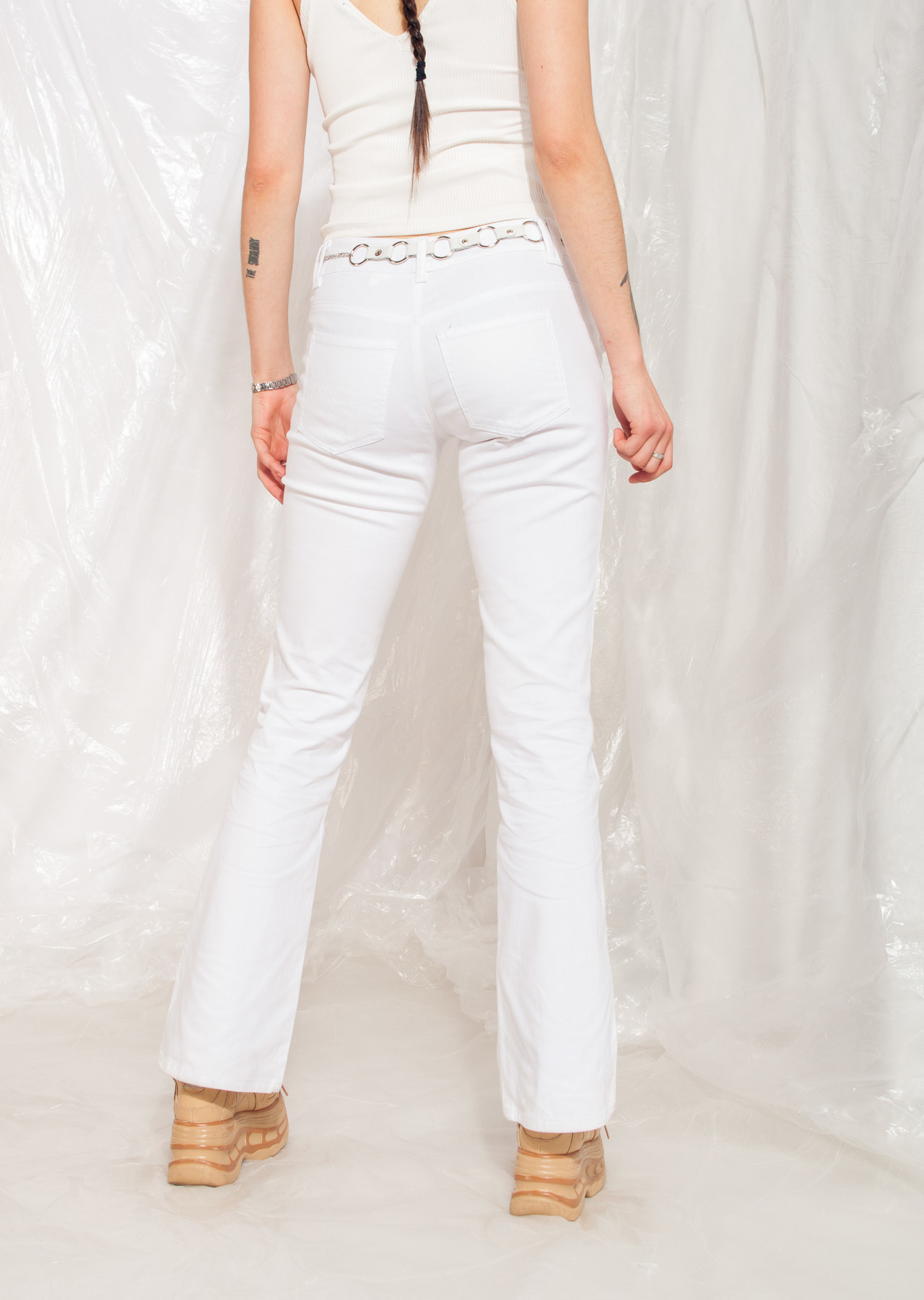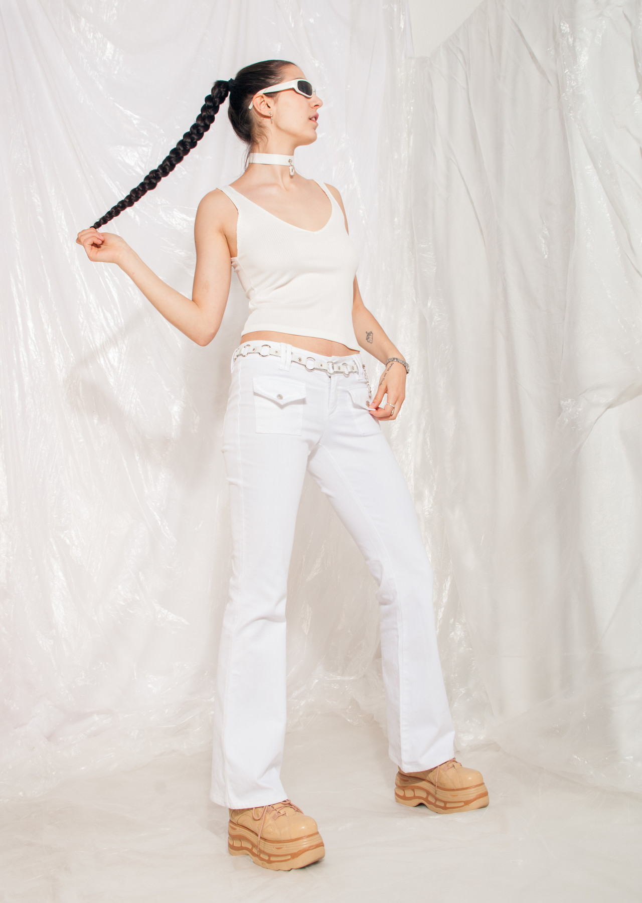 Vintage Flare Jeans Y2K Rave Trousers in White Denim