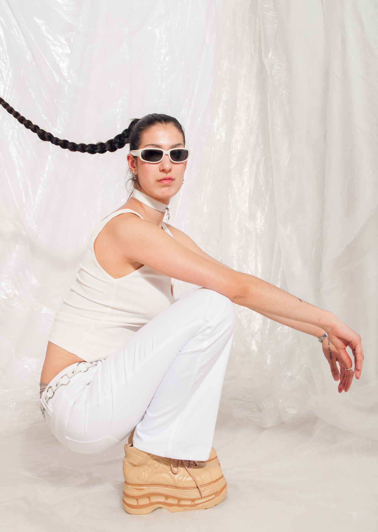Be the first to review “Vintage Flare Jeans Y2K Rave Trousers in White Denim” Cancel reply