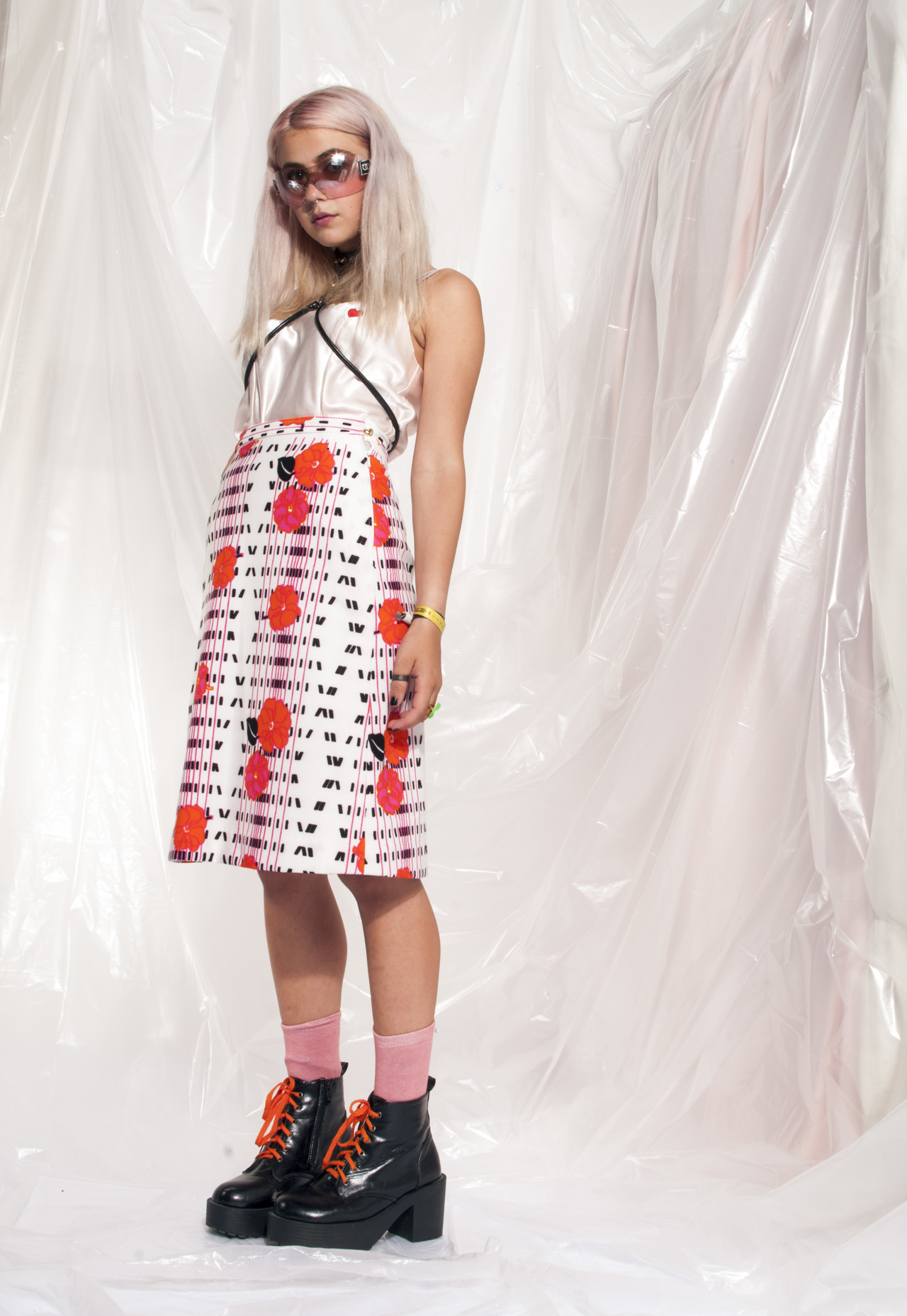 This floral midi skirt is a real vintage item that escaped from the swinging sixties. It miraculously survived in great condition, though, we had to replace its ugly button with a golden heart-shaped one to fix the level of cuteness. It’s fully lined and has a zip closure.