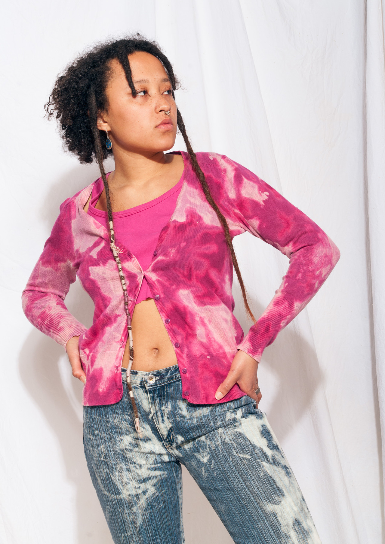 Vintage Knit Cardigan Y2K Reworked Tie-dye Bleach Pink Top