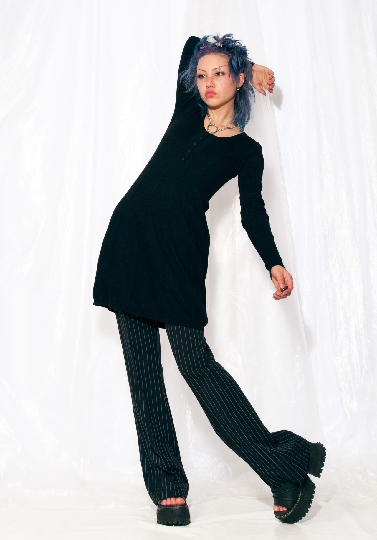 Vintage Knit Dress Y2K Long Sleeve Staple Mini in Black