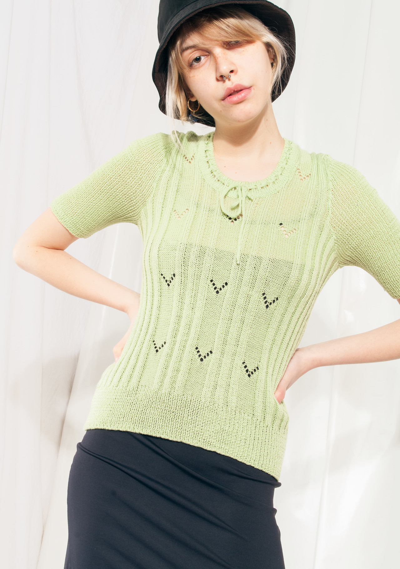 Be the first to review “Vintage Knit Top 70s Openwork Baby Tee in Pastel Green” Cancel reply