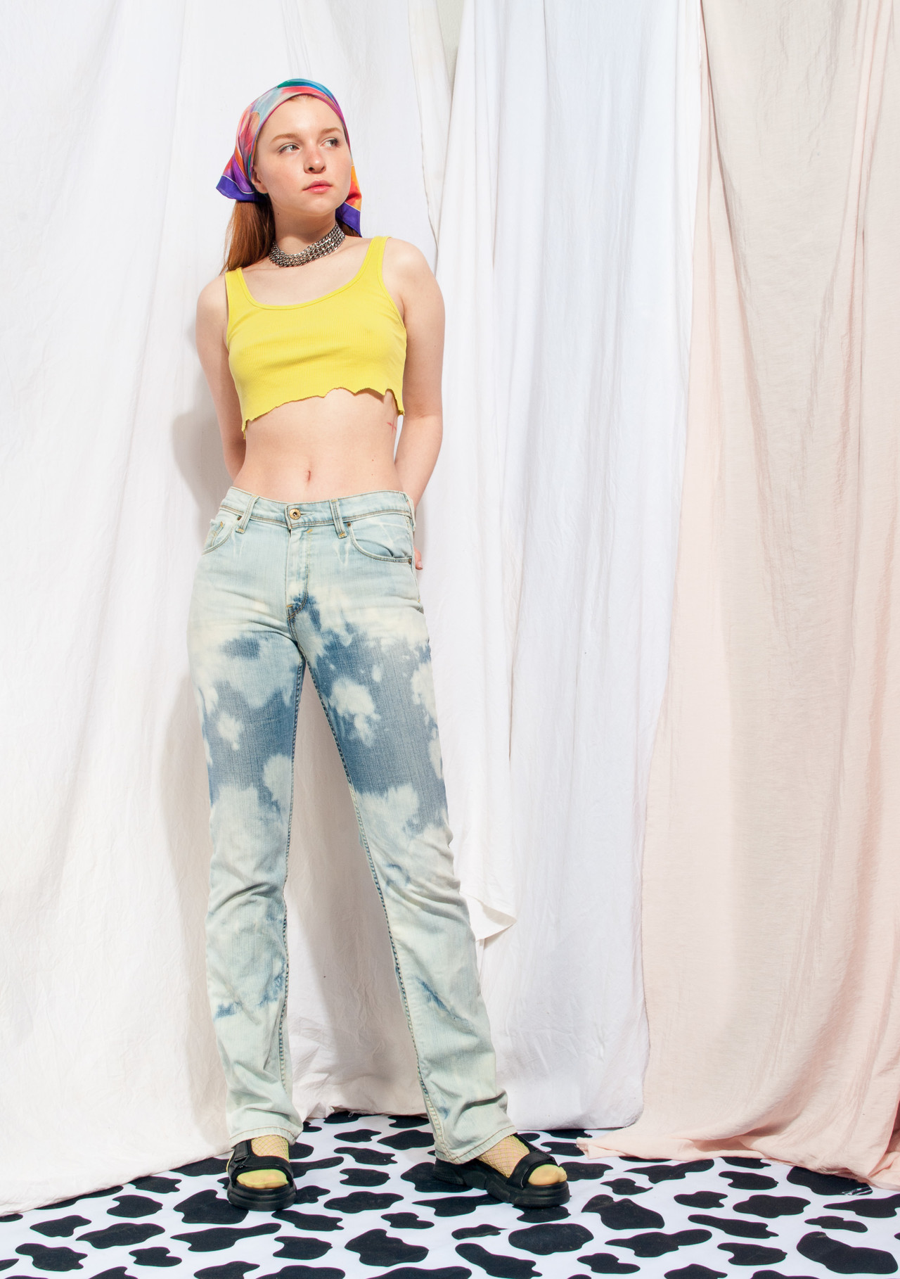 No need to look further, true vintage Levi’s jeans in good condition even though it’s from the sunshiny 2000s! It’s a one-off reworked beauty that we bleach painted to get the cloudy pattern. It has five pockets and zip & button closure. That’s right, this vintage fashion gem will make you look bitching’ wherever you go.