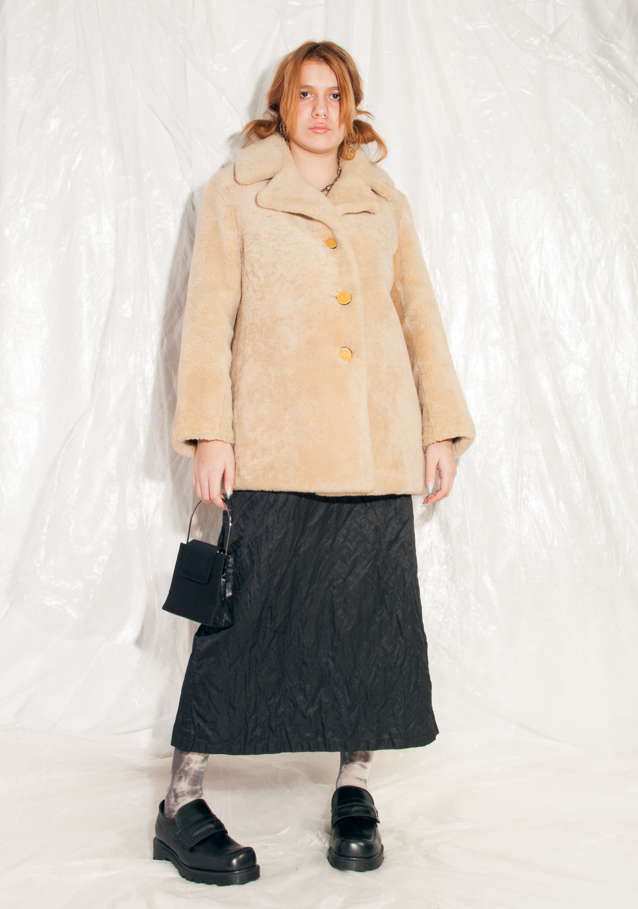 Vintage Shearling Coat 60s Mod Teddy Coat in Beige