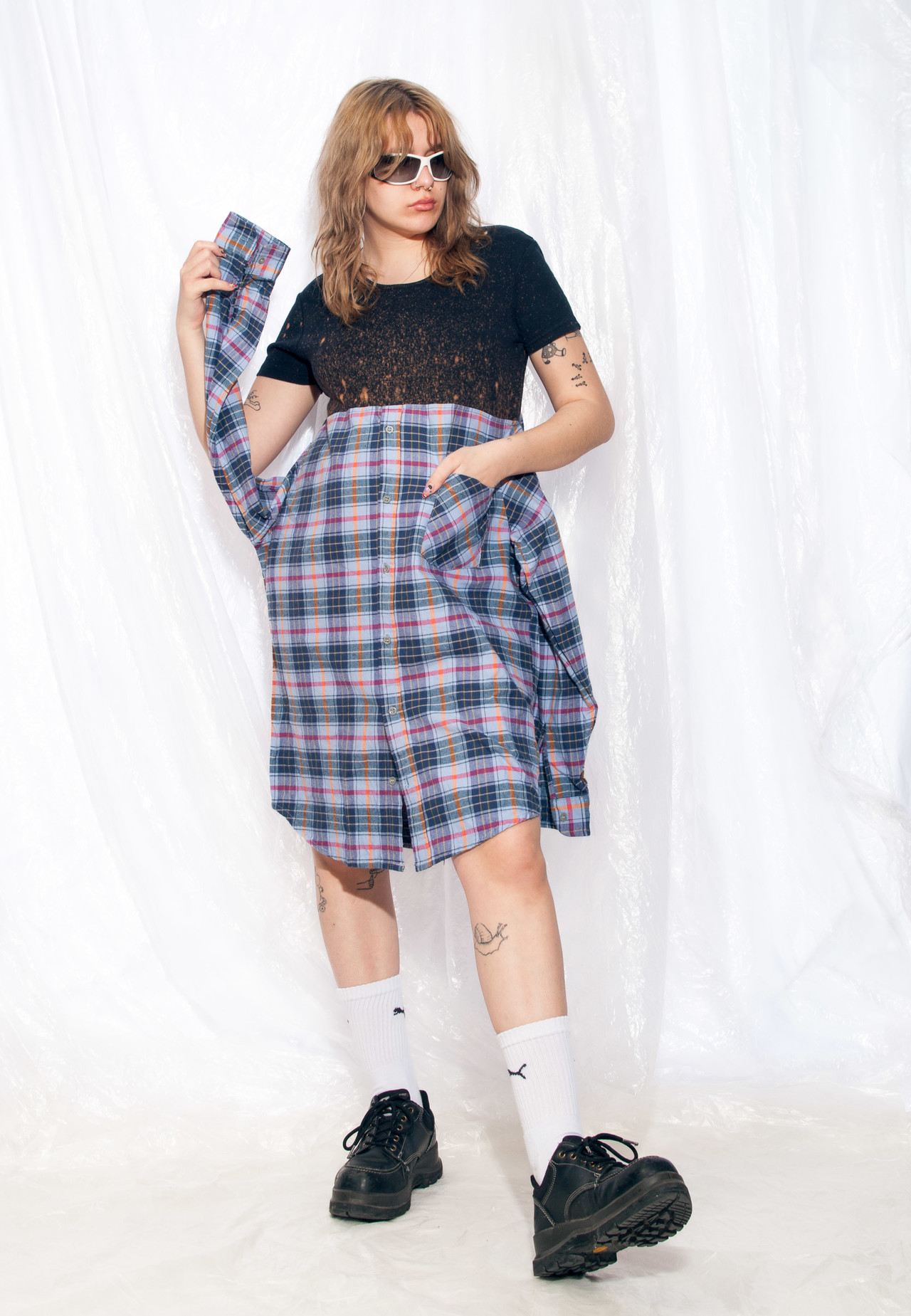 Vintage Shirt Dress Y2K Reworked One-off Grunge Midi