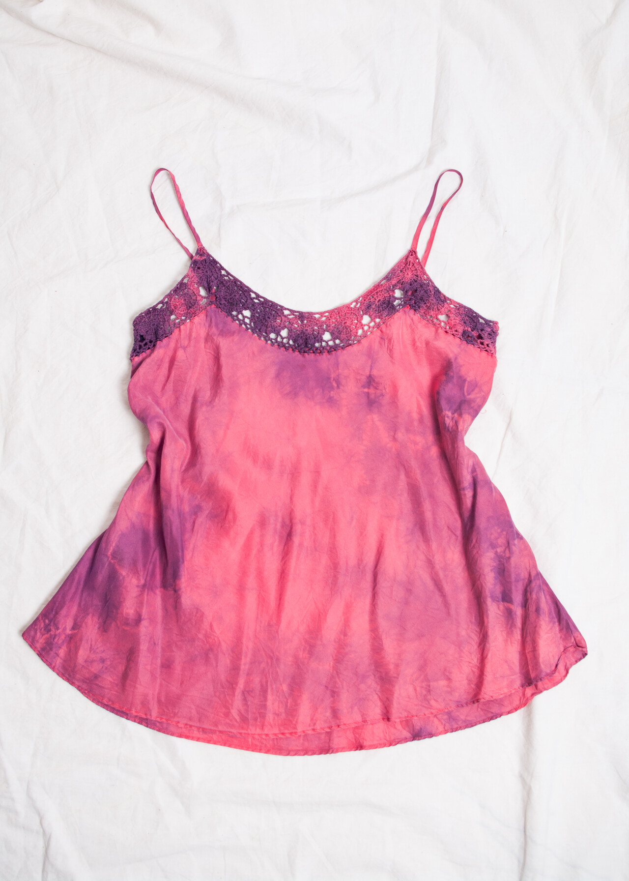 Vintage Silk Top Y2K Reworked Tie Dye Fairy Camisole in Pink