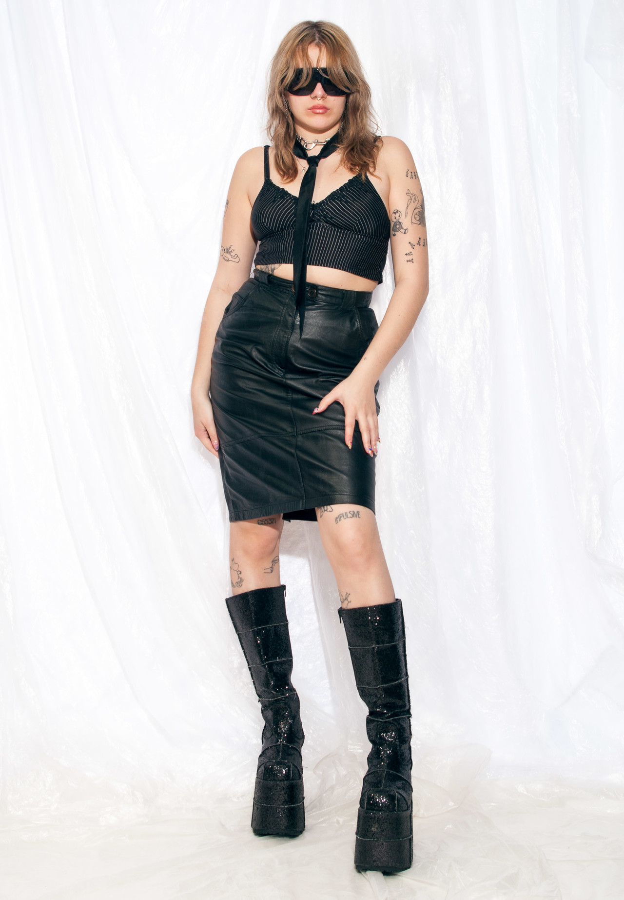 Be the first to review “Vintage Skirt 80s Black Leather High Rise Midi” Cancel reply
