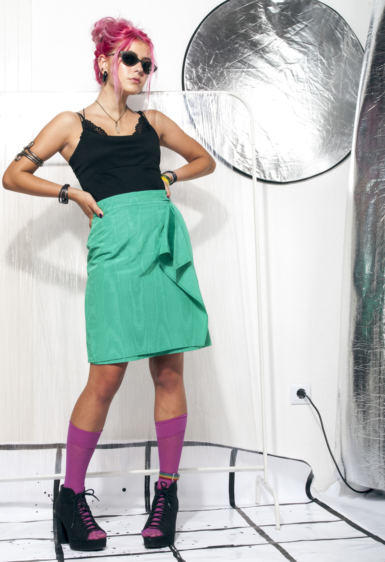 Rad frilly skirt from the 80s featuring a zip closure and an overlapped, high-waisted cut. This vintage babe was made in Paris and survived in great condition.