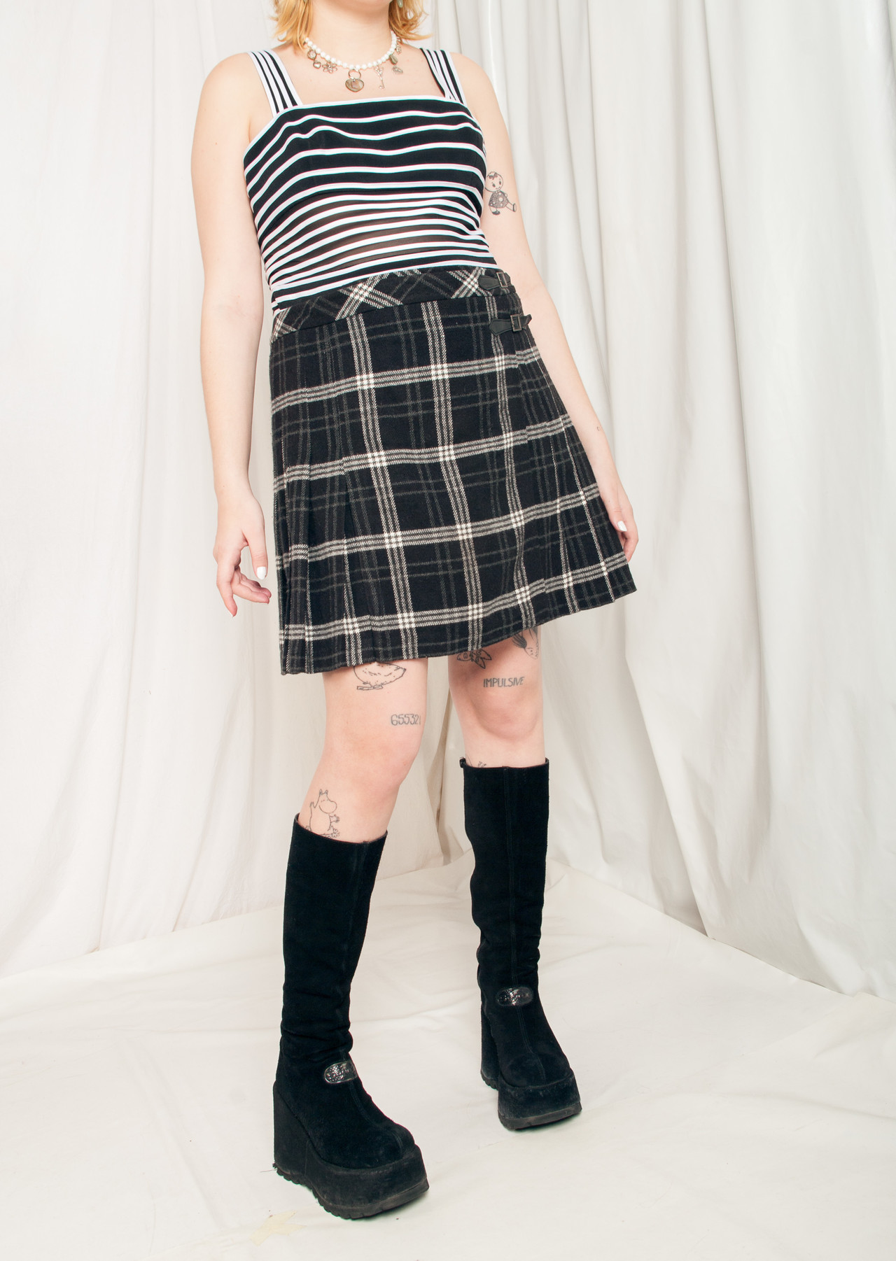 Be the first to review “Vintage Skirt 90s Plaid Grunge Kilt in Black” Cancel reply