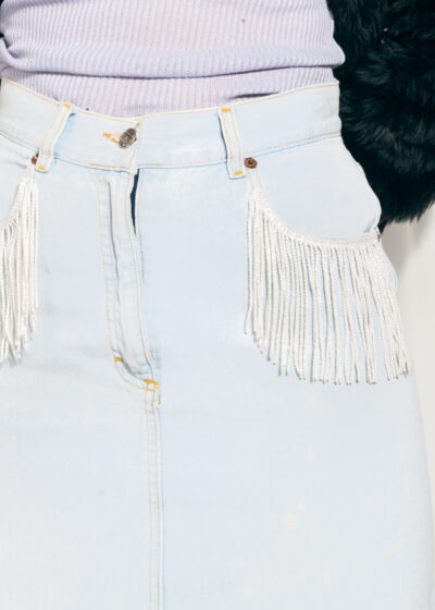 Vintage Skirt 90s Reworked Western Fringe Denim Mini