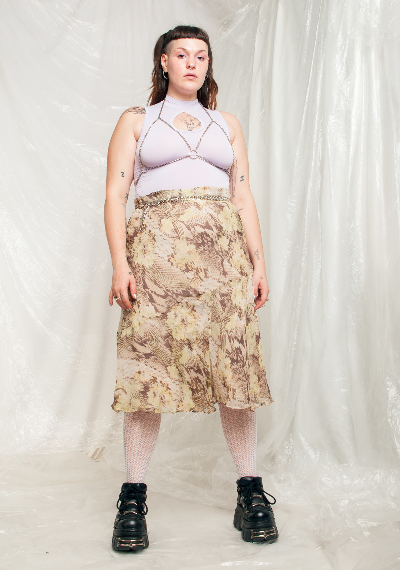 Vintage Skirt Y2K Fairy Midi in Beige Silk