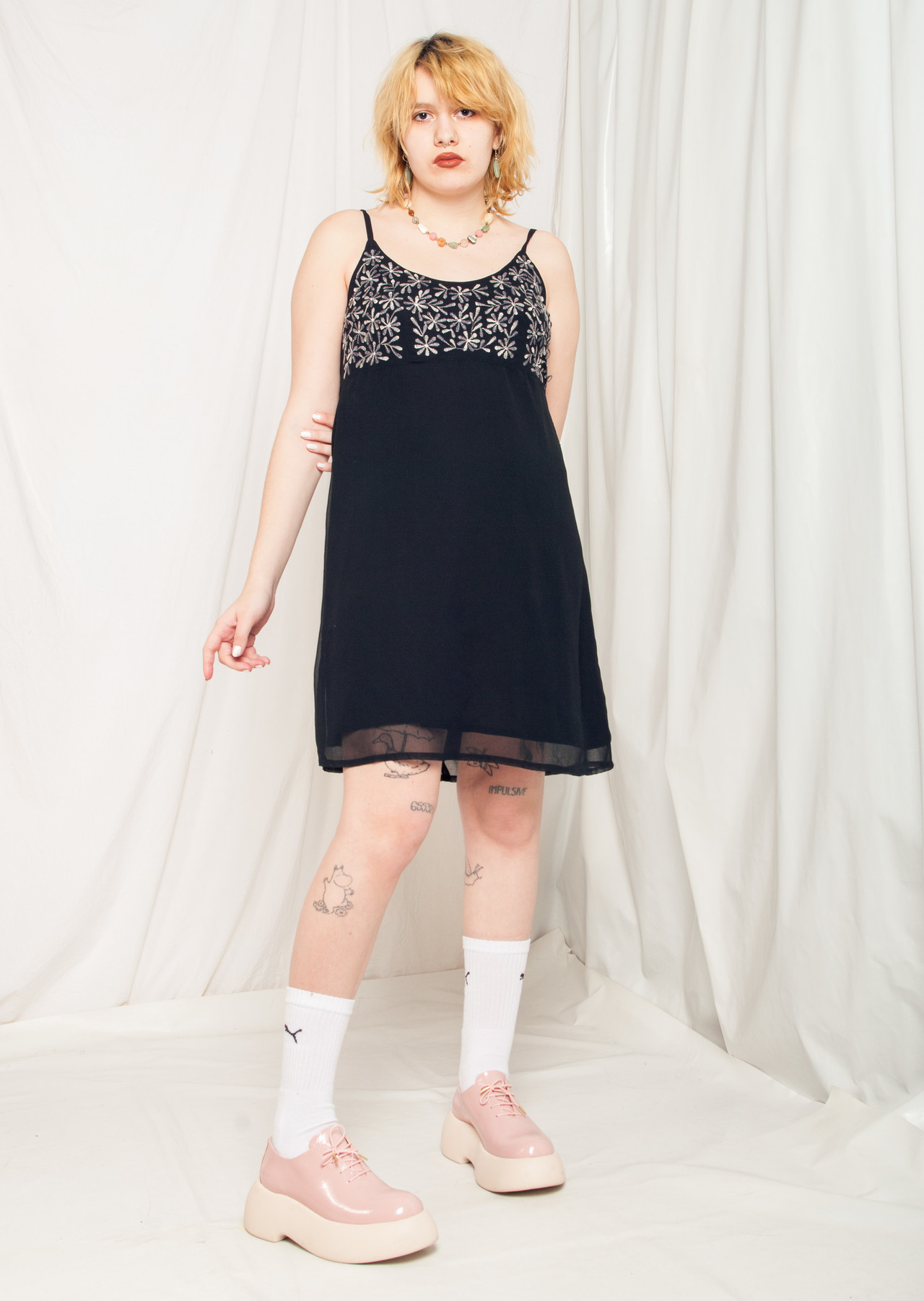Vintage Slip Dress Y2K Sheer Flower Power Mini in Black