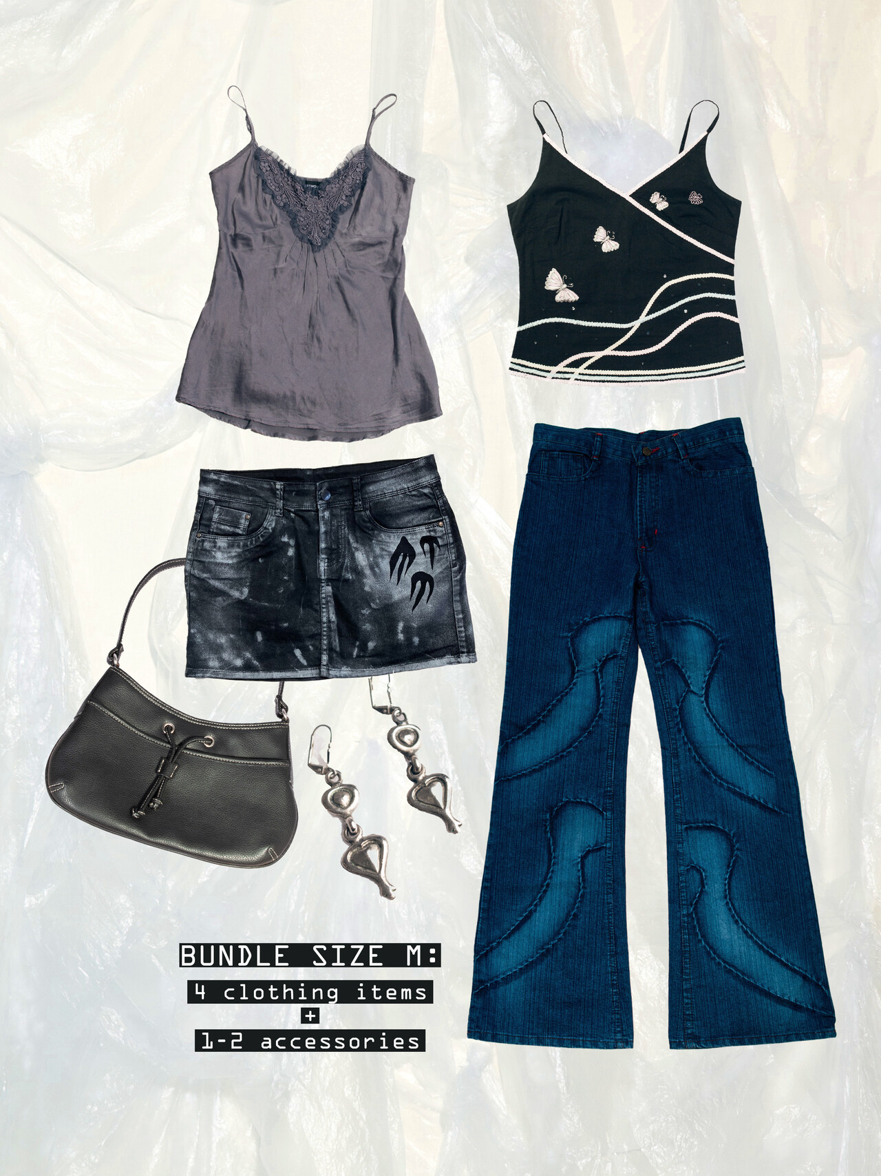 This is our medium Style Bundle – You will receive 4 clothing items along with 1-2 matching accessories. We’ll curate pieces that complement each other, allowing you to create various outfits by mixing and matching them.