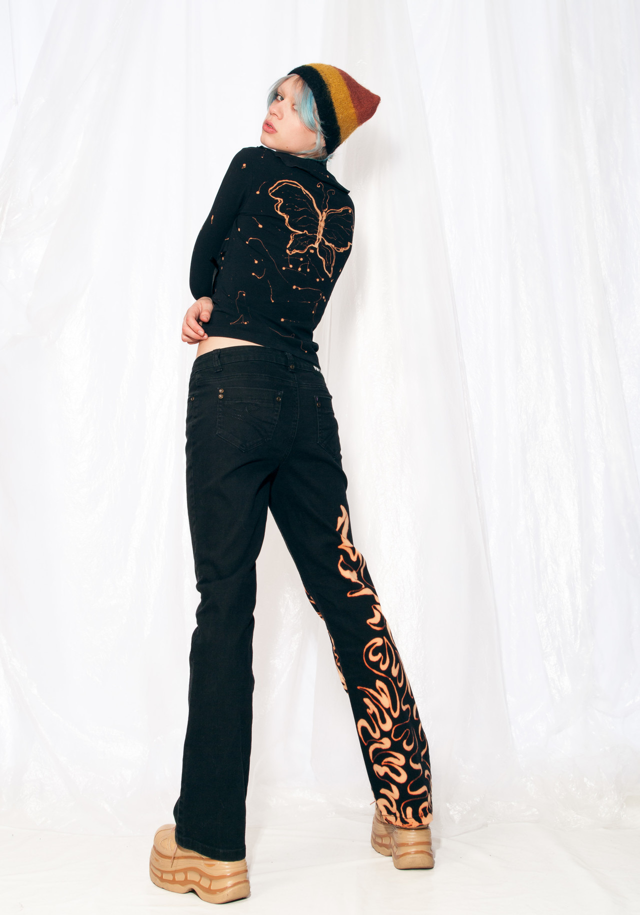 This reworked Y2K vintage top is a one-off gem made in Greece from stretchy cotton fabric and has a hand-painted butterfly on the back. Cute AND environmentally friendly – what’s not to love?