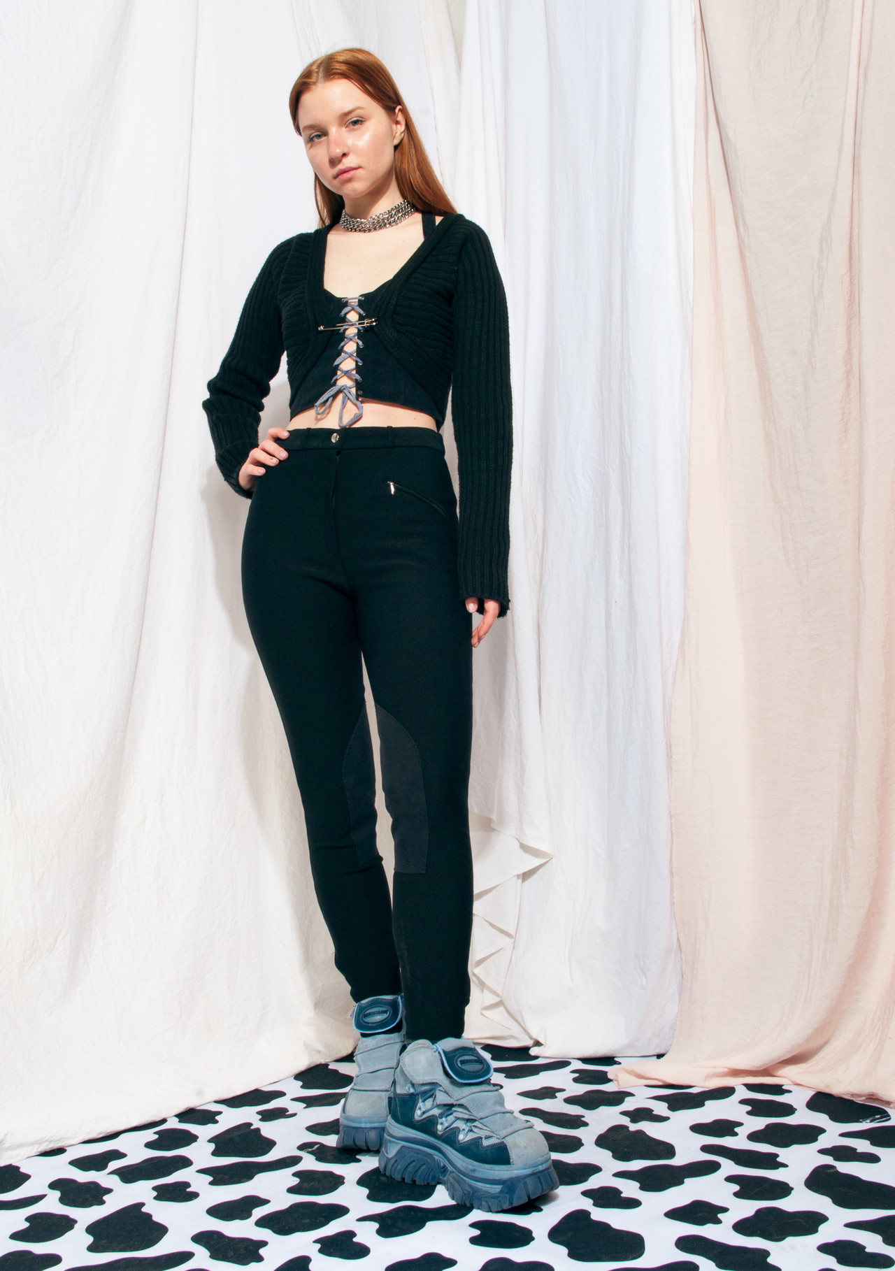 Insane vintage horse-riding trousers, a 90s masterpiece still in excellent condition. It features stretchy & ribbed black fabric with leather details at knees, zip & hook closure and the coolest high-waisted cut. Made in Europe. We have nothing left to add, so here comes our daily styling tip: mix this one with more vintage stuff!