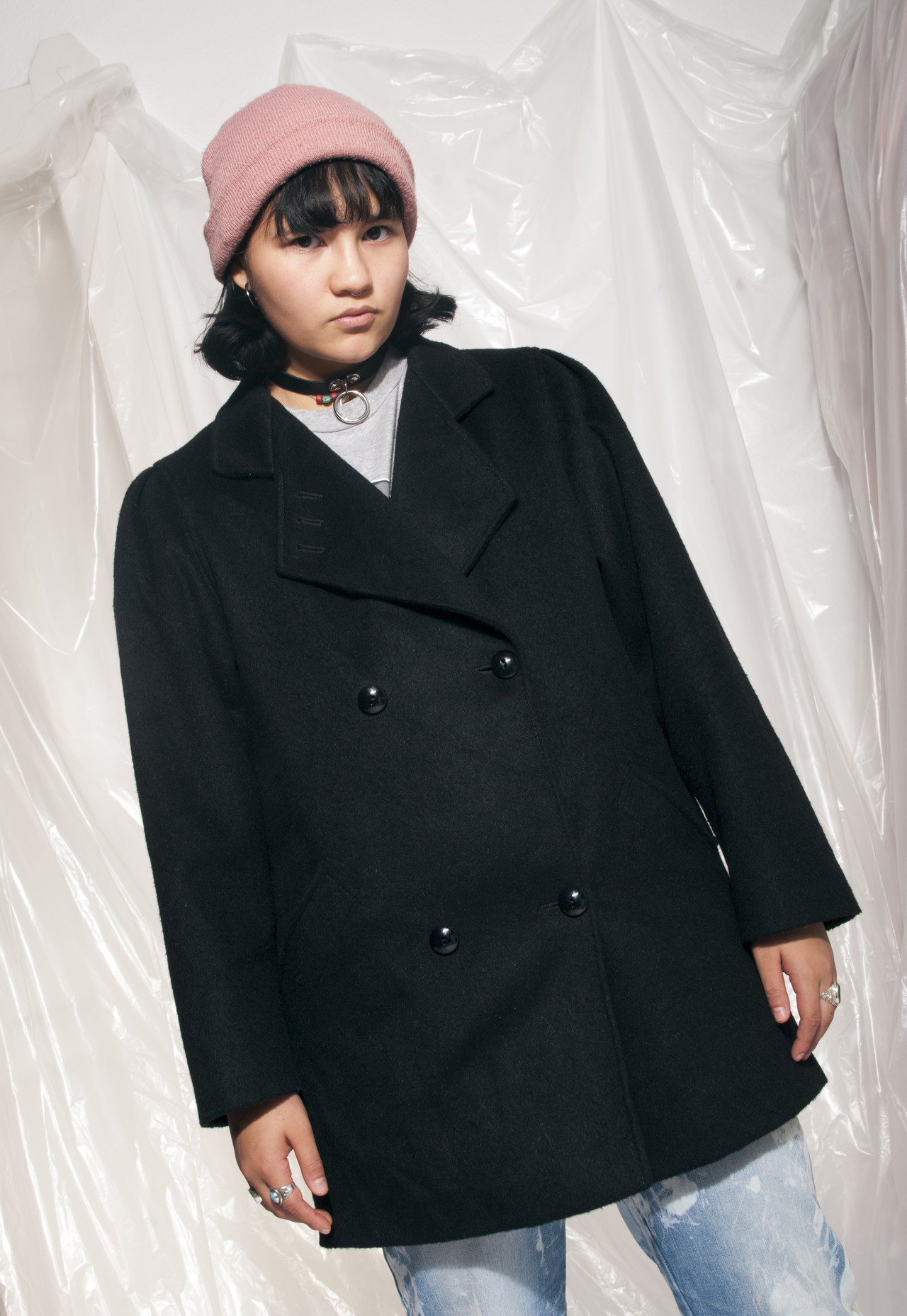 Vintage wool coat 80s minimalist black grunge winter jacket