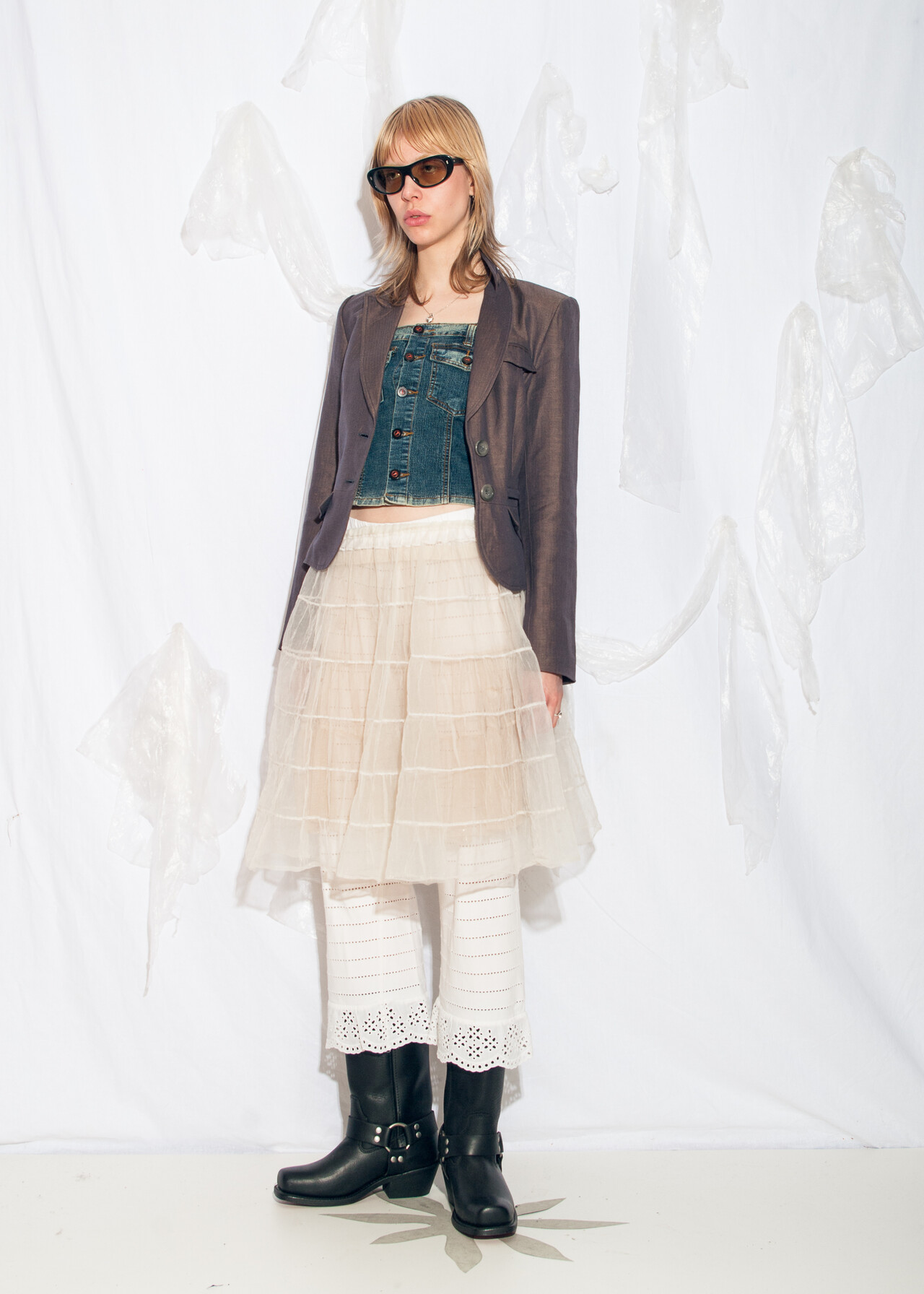 Y2K vintage office siren blazer – a short fitted wonder that screams “I’m here for business and bad karaoke nights.”