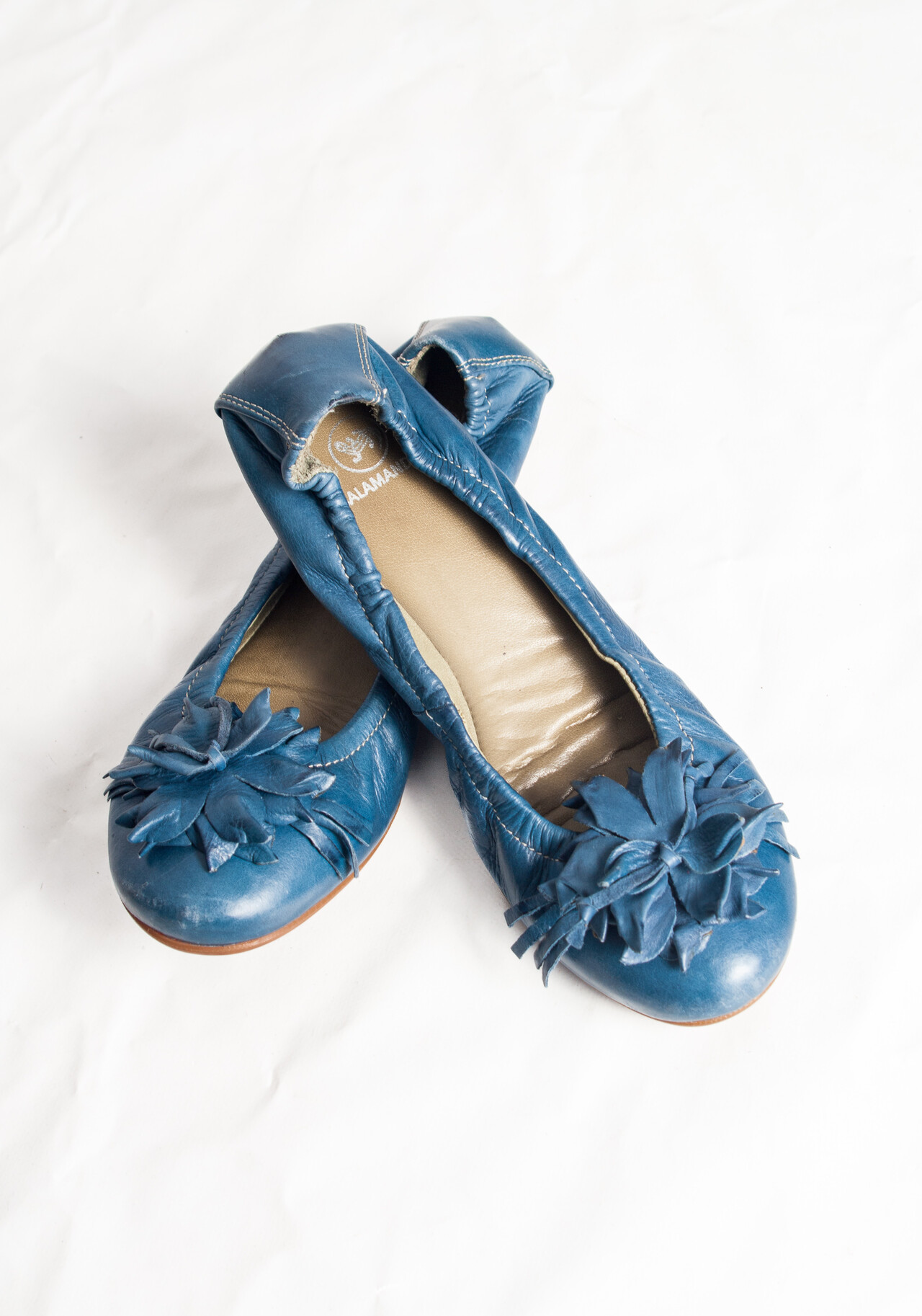 Vintage Y2K Ballerina Shoes in Blue Leather w Flower
