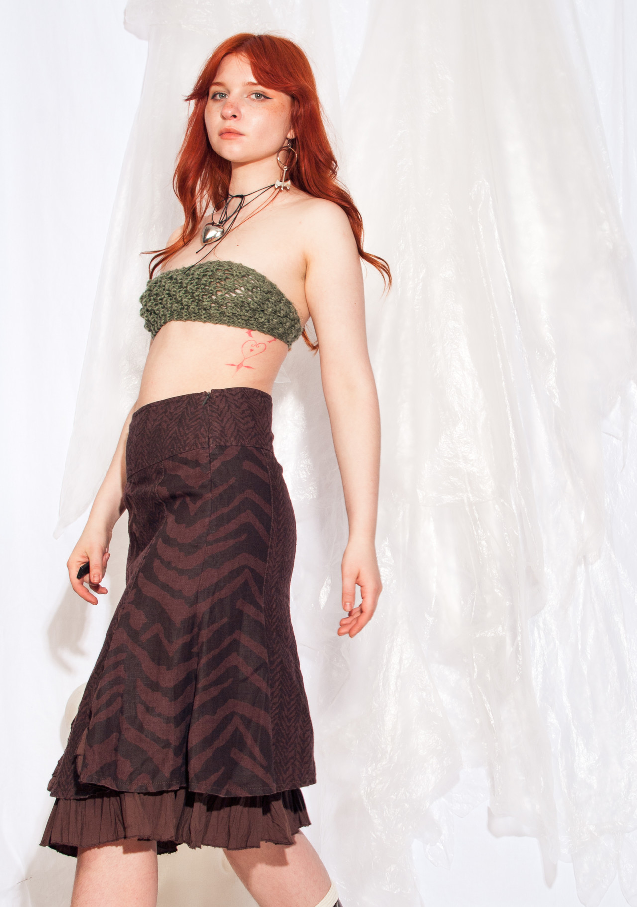 Y2K vintage skirt from Biba. It’s like wearing a frilly hug from the past. Plus, it’s sustainable fashion at its finest. Who knew a brown linen midi skirt could bring so much joy and environmental karma? Zip it up and let’s slow fashion down. It’s a low-rise fit for an EU size 34 and a middle-rise fit for a size 36.