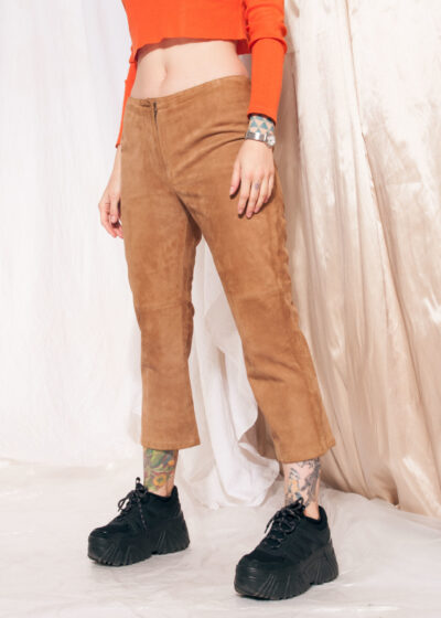 Vintage leather trousers Y2K suede flare cropped pants