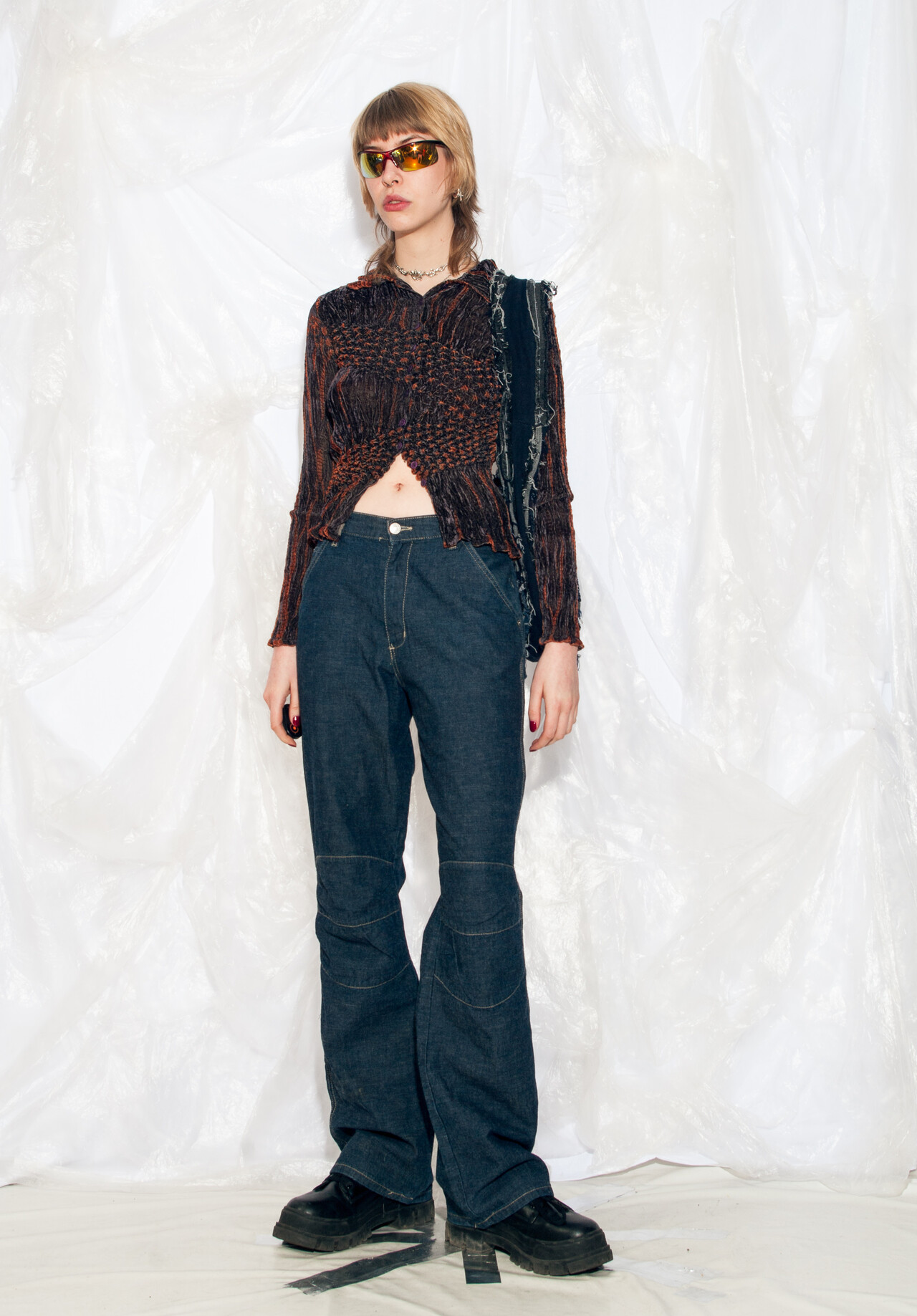 Vintage jeans 90s reworked clear PVC panel crop denim pants