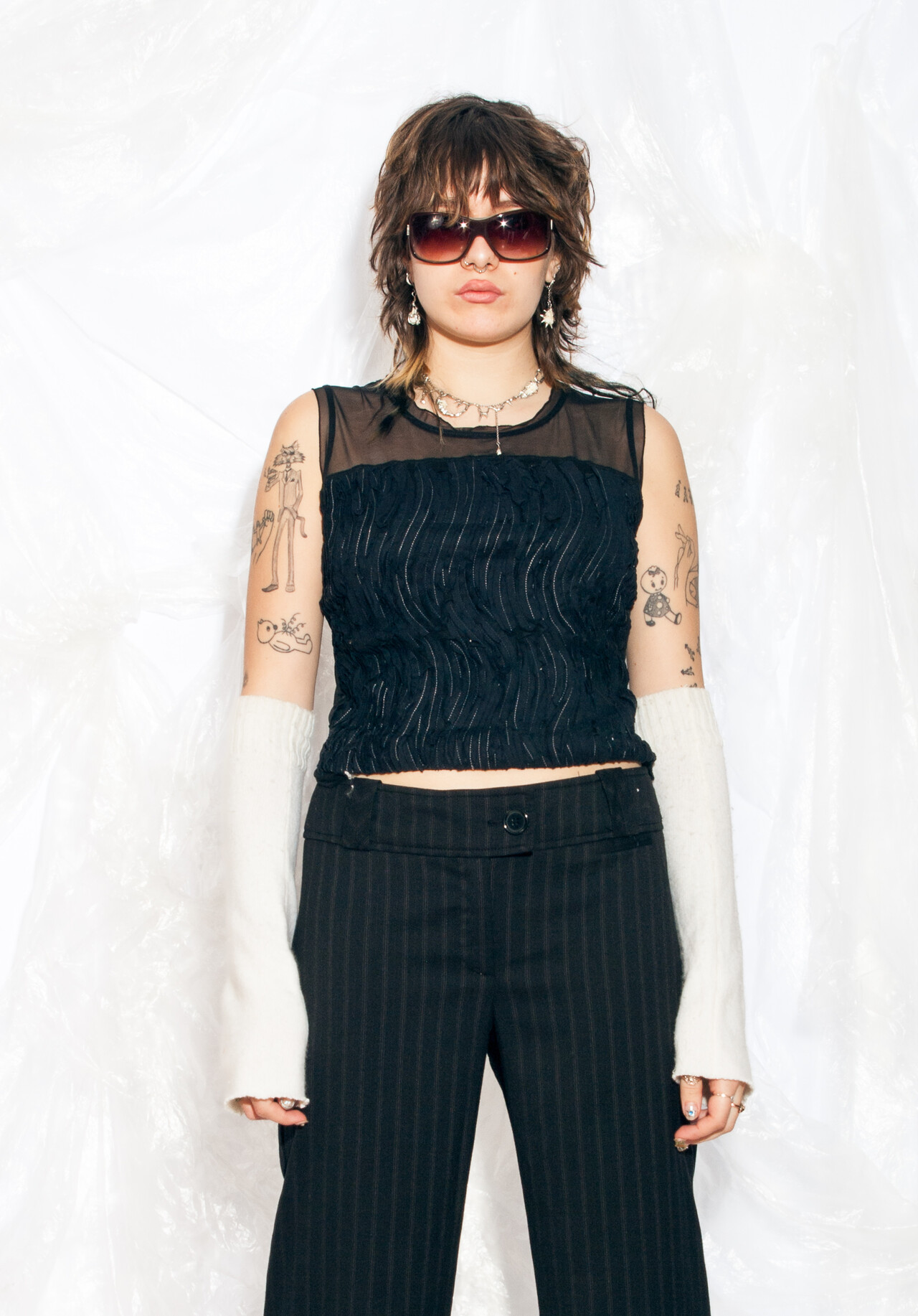 Be the first to review “Vintage Y2K Crop Top in Black Mesh” Cancel reply