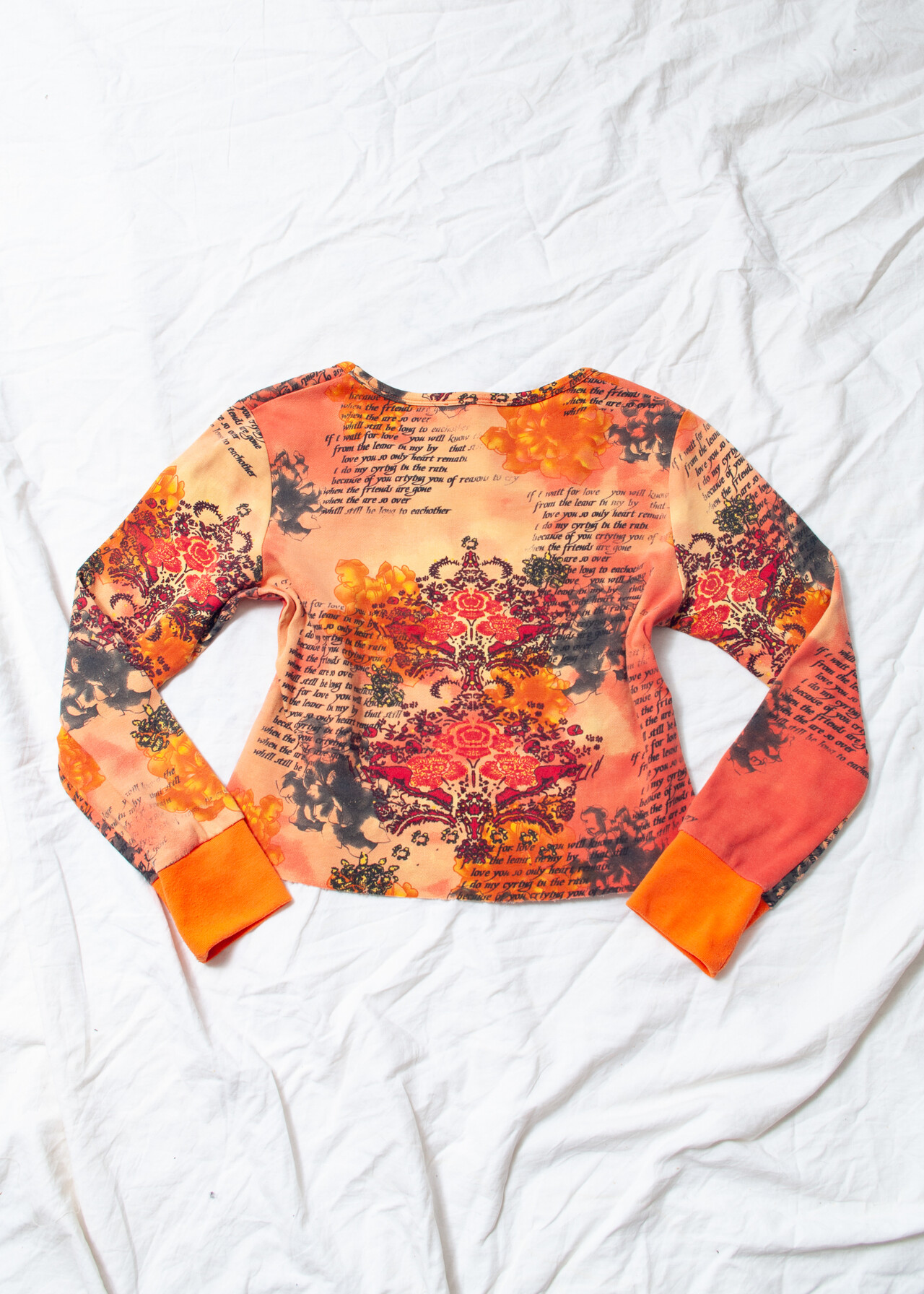 Vintage Y2K Cyber Boho Text Printed Top in Orange