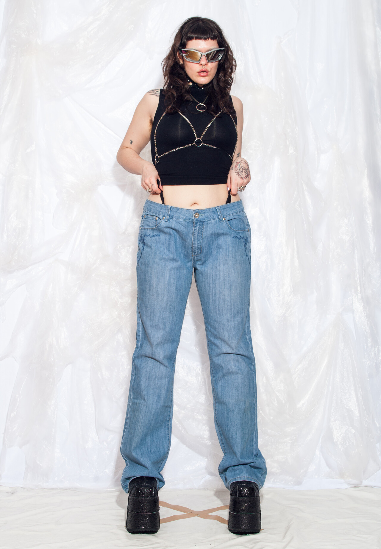 These deadstock Y2K vintage jeans bring the ultimate feel of Y2K fashion right to your doorstep. Let your legs enjoy the cosy fit of these flares, decorated with flower-embroidered details.